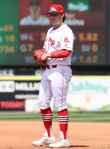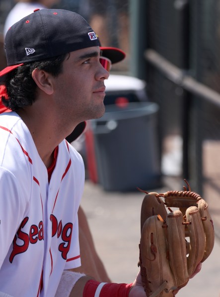 Marcelo Mayer seems to be the prospect likely to make the biggest future splash at the major-league level.  He’s 6-2/188 pounds.  Good size for a shortstop.  He seems very comfortable in the field for a 20-year-old.  Drafted in the first round in 2021.  He bats left-handed.  I have tried to get shots of him in quantity because it is quite likely he will move on to AAA Worcester before the end of the season.