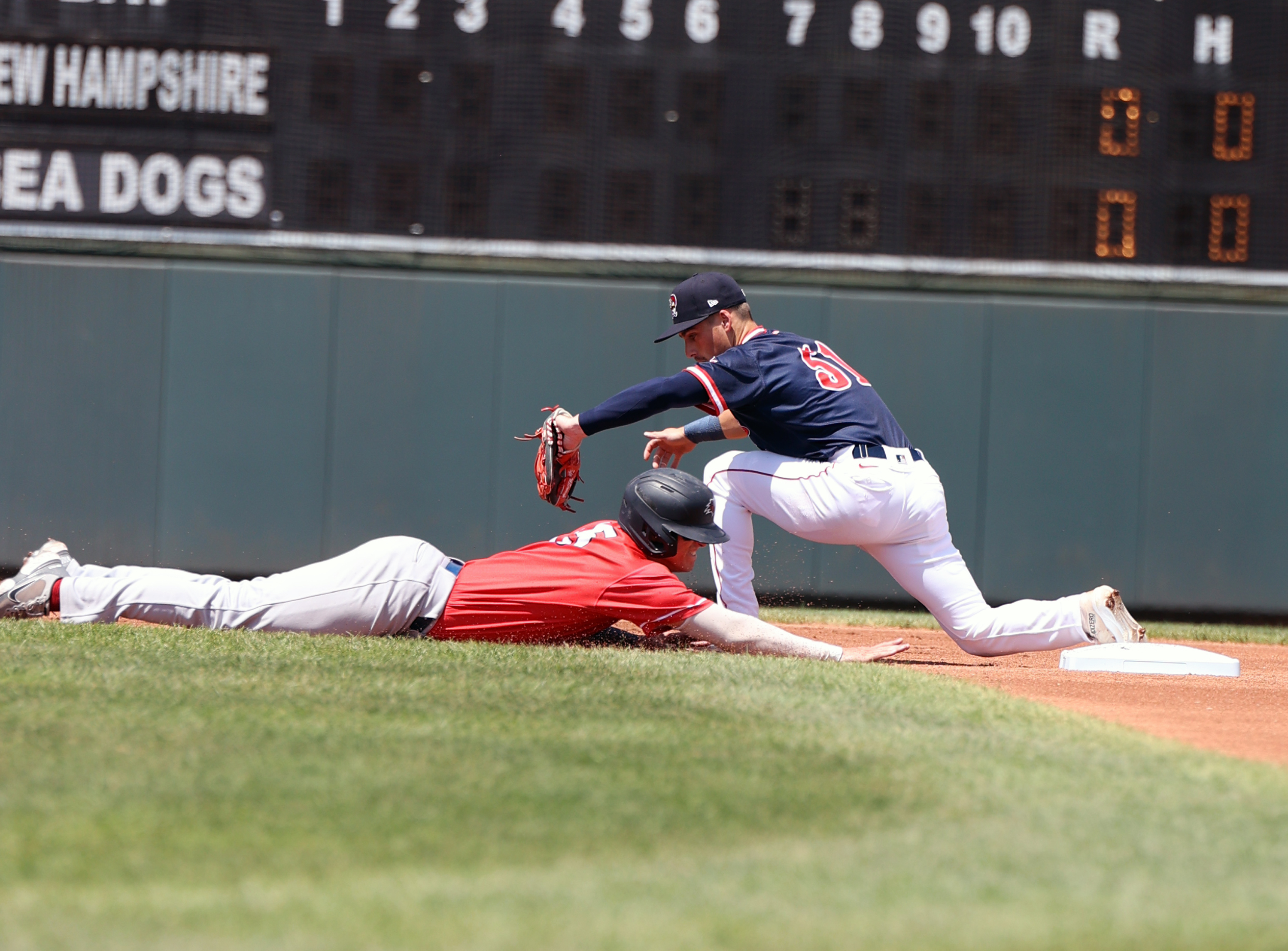 Trevor’s play from deep short saved a hit but it was third baseman Blaze Jordan’s snare of a line drive that was the defensive play of the game in my opinion.  Blaze’s grab saved a run and turned into a double play as he finished the play picking off the NH baserunner at second base.