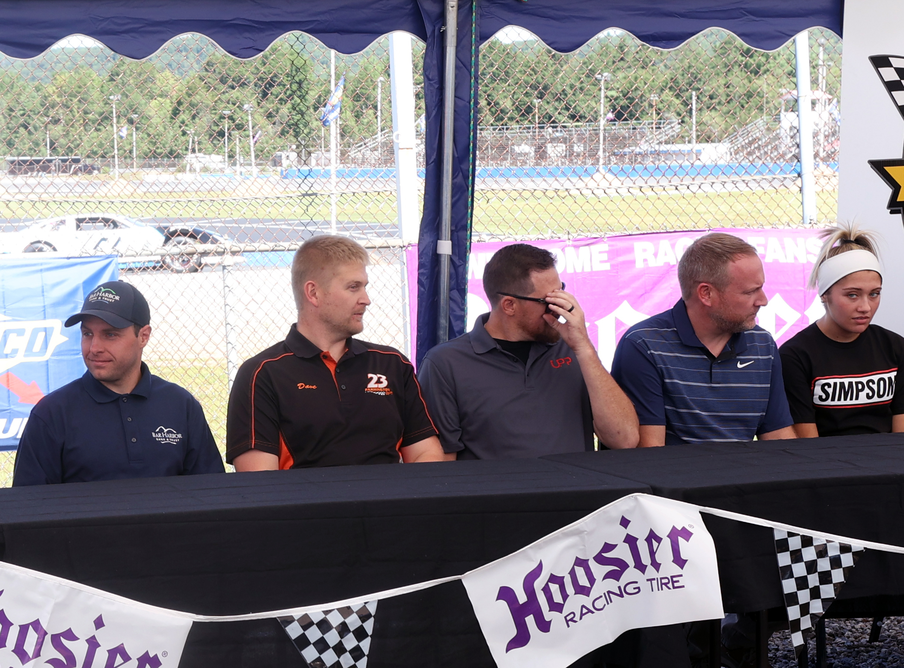 Kate Re – “I would love to have this weather on Sunday, not too hot, not too cold.  The rain can really change the track.  I’m just here to put my helmet on like everyone else.  When it comes to the Oxford 250, I want to be known as just another driver.  I don’t want to be singled out because I’m a female up there.  We’ll start by trying to race our way in and go from there.  This track is greasy with not a lot of grip.  You’re constantly turning so it’s not like your normal Thompson with a long straightaway and tight corners.  You’re constantly turning.  Passing is hard with the lack of grip.  I would not be tempted to ride up on the high side.  I like the fourth groove out there.”