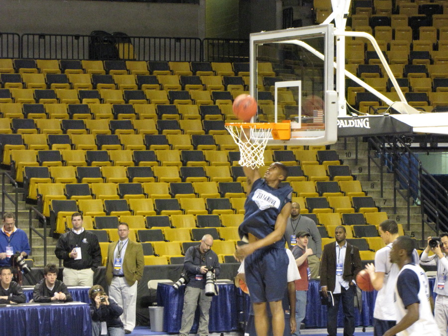 This team did some serious isometric exercises at the start of their 50 minutes. The impressive player in many respects was #33 senior Dante Cunningham. Coach Jay Wright spent much of his time conversing with announcers Bill Rafferty and Vern Lundquist.