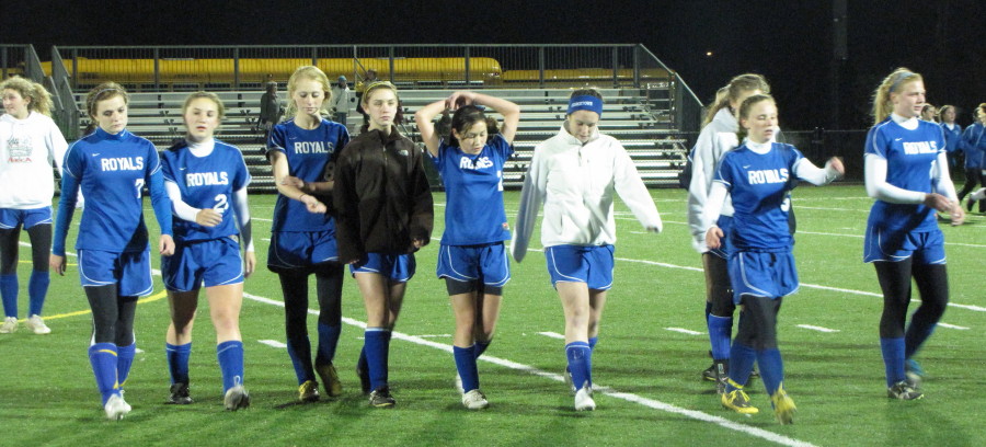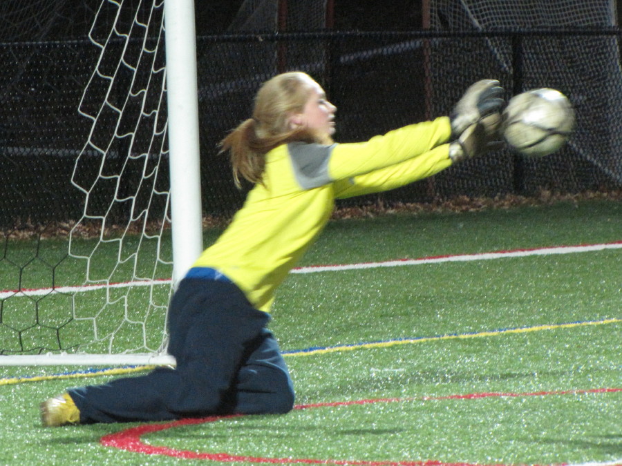 Molly Breen was a serious threat on corner kicks and direct kicks but otherwise she had a “small problem” – Kelly Chickering of Georgetown. The Royal sophomore shadowed the much taller Miss Breen and limited her touches throughout.