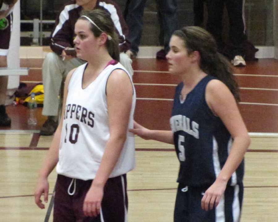 The Clippers were extremely patient on offense throughout, despite twenty turnovers, and abandoned long-range shots for a significant number of high-percentage shots (24/59-40.6%) closer to the basket. Sophomore Beth Castantini (21) and senior Sam Baribeault (13) were on the scoring end of many of the interior passes. Both girls can get to the basket.