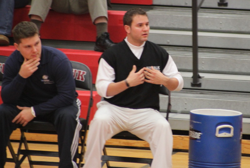 across the court and again told the coach to sit down. Coach Trimboli did sit down probably thinking that the referee would come over and give some sort of explanation if he did. He didn’t. I was trying to imagine Bobby Knight in the same situation!