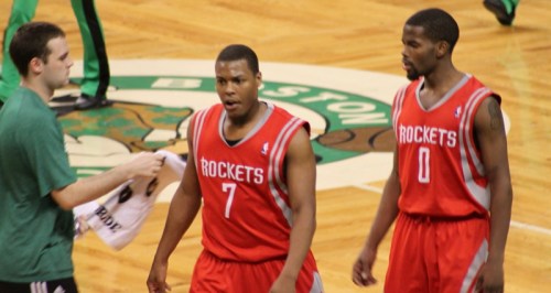 Kyle Lowry #7 (17 points/8 assists) and #0 Aaron Brooks (24 points) keyed Houston’s upset win over Boston.