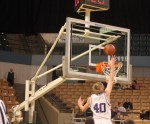 Joe DeSandre tries to contain 6-8 Kuran Iverson (17 points).