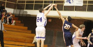 Whitinsville usual scorers showed early as Hans Miersma (15 points) converted an offensive rebound, Colin Richey (15 points) drove the length of the court, and Taylor Bajema (24 points) hit a couple of 3’s, a layup and two free throws. The Broncos never could come up with defensive answers for this talented threesome.