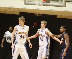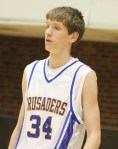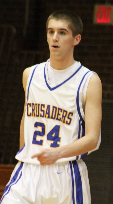Colin (6’2” sophomore) had several full-court drives as well as three 3-pointers and was a very alert passer in the Crusaders’ half-court offense.