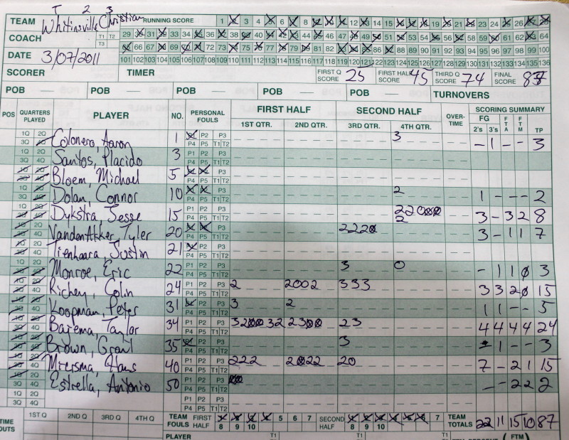Highlighting that stretch were three 3’s by Colin and one by Taylor. Up 63-19, the Whitinsville starters were benched for the last 1 ½ quarters.