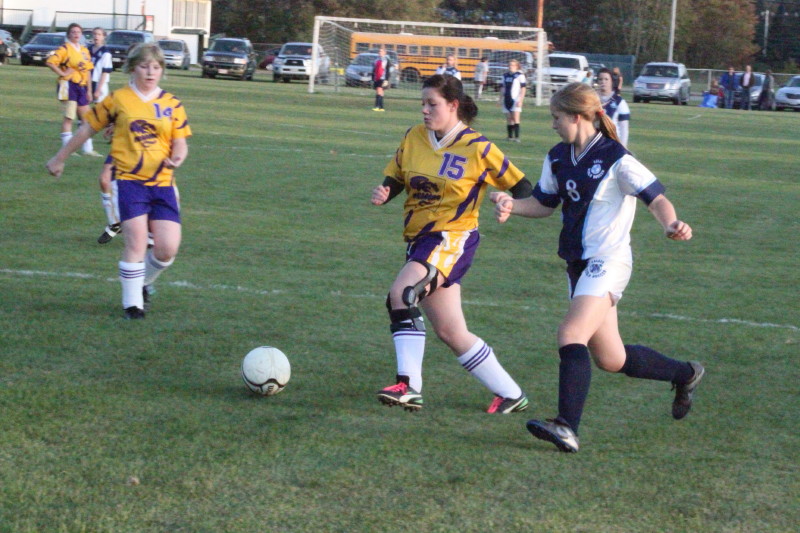 The Lady Dragon uniforms looked an awful lot like the shirts the two referees were wearing. I learned that both Calais and Woodland will have to have new home uniforms next season. I assume that the home team will have to wear white shirts in 2012.