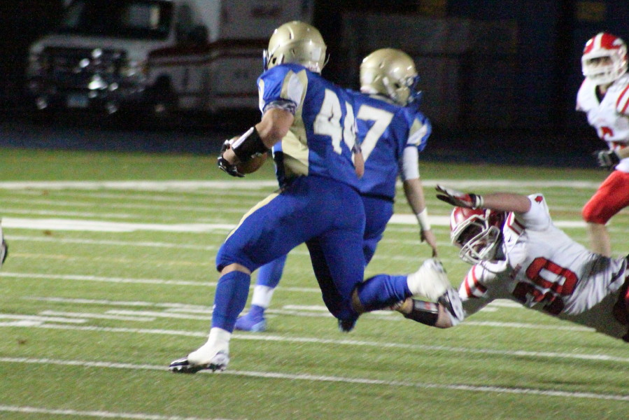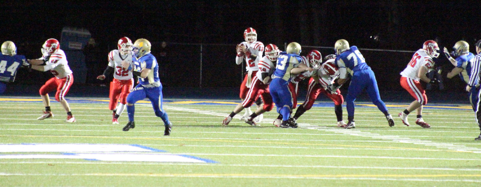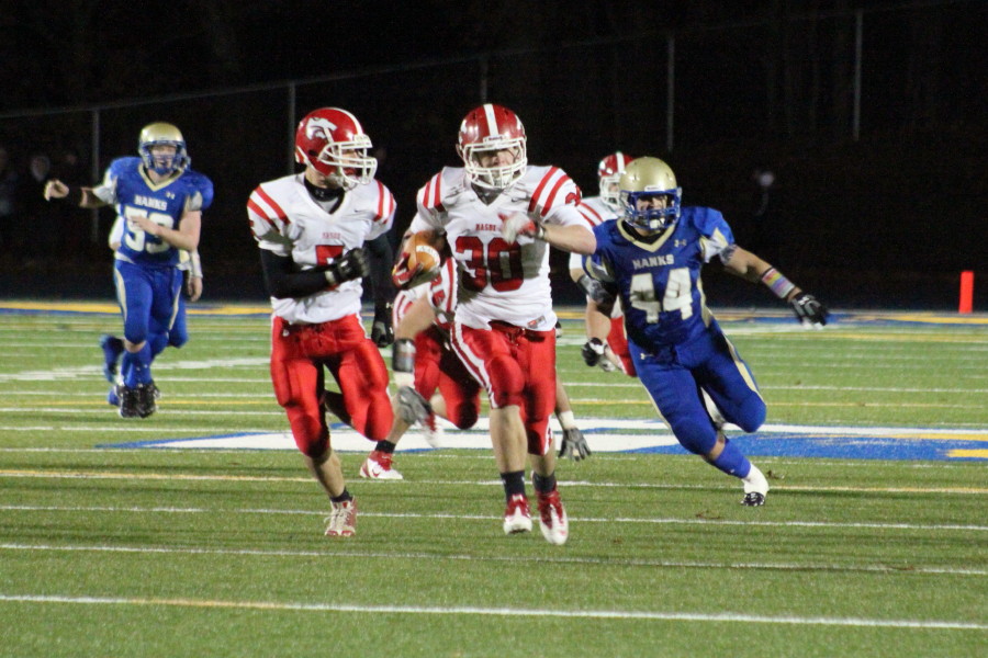 The Newburyport faithful will recall a major squander by their Clippers in the first period. Jimmy Conway intercepted a Trevor Lyons pass and Newburyport was golden on the Generals twenty. Connor Wile converted a third down play with a scramble to the HW 9. Runs by Connor and Tyler Martin brought the Clippers to the HW2 for third down. Big defensive play alert – Luke Wendt deflected a pass attempt over the middle and Newburyport was forced to settle for a field goal attempt. When Brandon Trego’s kick went wide left the squander was complete.