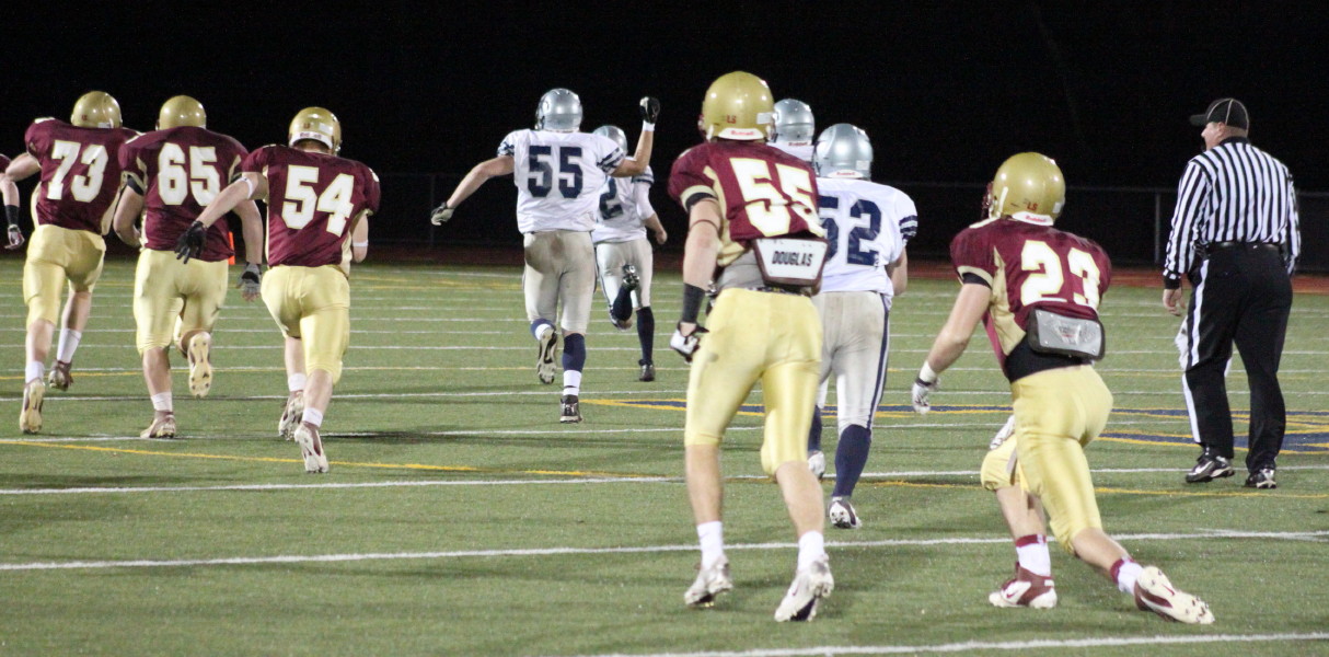 The five-yard, game winner, by quarterback Trevor Lyons, was at the conclusion of a ten-play, five-minute drive that started at the Newburyport 40. The HW advance toward the end zone and the winding down of the clock in a scoreless tie, created edge-of-the-seat drama.