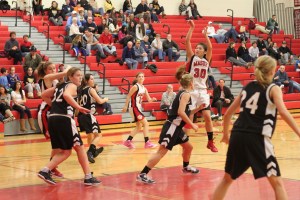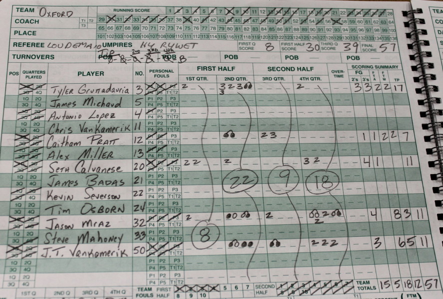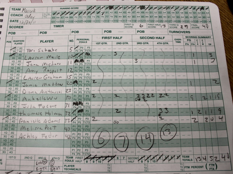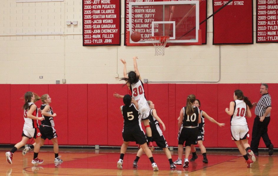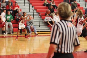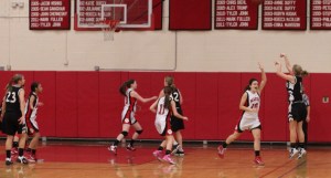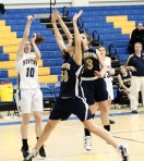 Note my picture of Thomese Holman about to shoot from the corner. In the stands behind her is Christian Terrell who drilled several long ones from the same area the night before against Norwalk.