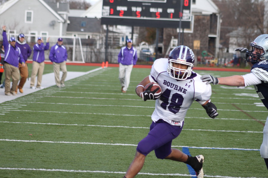 Bourne nearly had the touchdown back immediately as Joe Epps got his hands on the kickoff. The speedster headed to his left, down the Bourne sidelines, and was on the HW 25 before he was tackled.