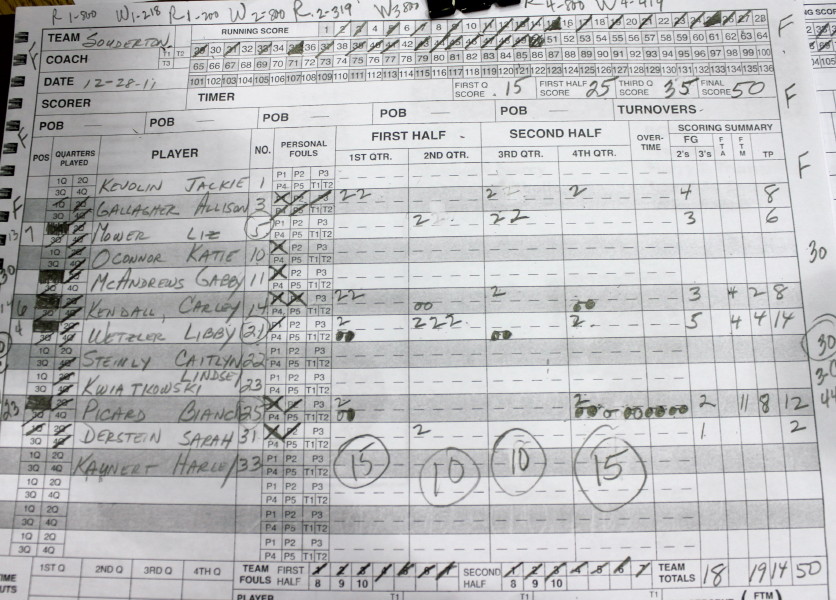 The Indians extended the lead to 37-24 early in the fourth quarter before a Monarch 12-6 run (Taylor Sweeney had two free throws and a three) made it a seven-point game (43-36) with 1:43 left. Souderton wisely kept the ball in Bianca Picard’s hands the rest of the way. The sophomore made seven of nine free throws to seal the championship for the Indians.