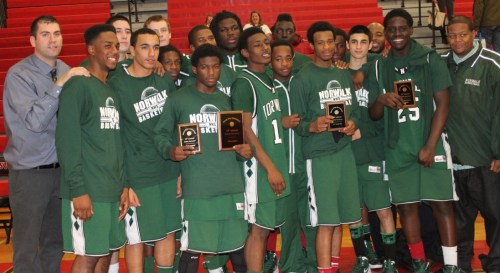 (Monroe) The Norwalk Bears (4-1) ran ten straight points in the third quarter to gain separation from the Masuk Panthers (2-3) and win the Masuk Holiday Tournament, 57-48, on Thursday night at Masuk High School.