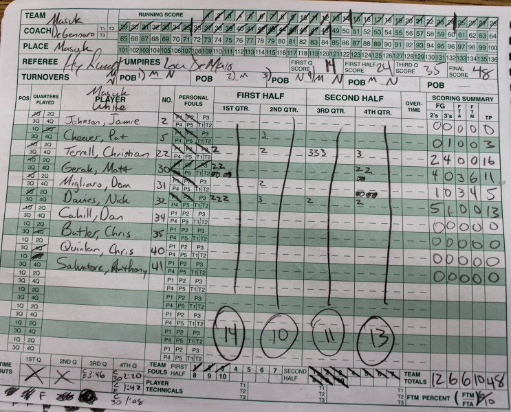 Part of the Masuk struggles came as top scorer Matthew Gerak (22 points in the first round) got into first half foul trouble and seemed to lose the effectiveness he had at the beginning of the game. He made a couple of baskets late to end up with eleven points.