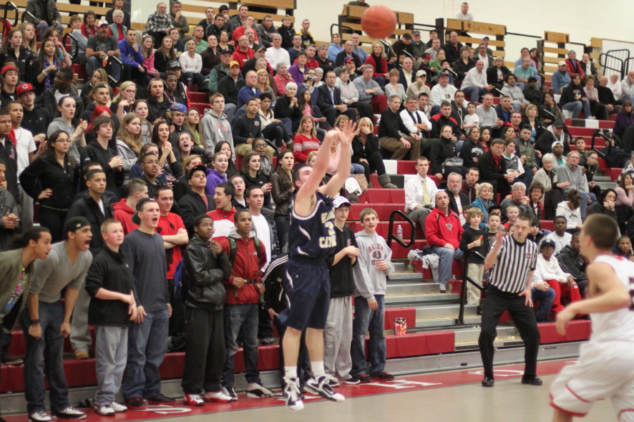 Chris Philpot (14 points) shoots a three from in front of the Salem crowd