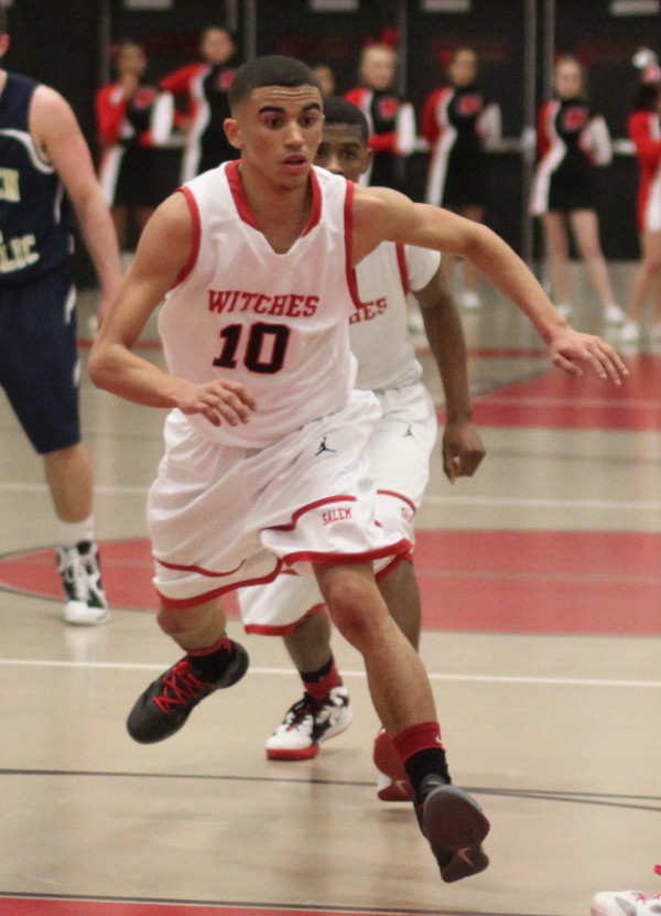 Marvin Baez (25 points) hit more big shots in the final quarter than most players will make in a season.  The Salem junior tallied fourteen points with four 3’s and a layup off of a steal in a display that the Witch fans will be talking about for a while.