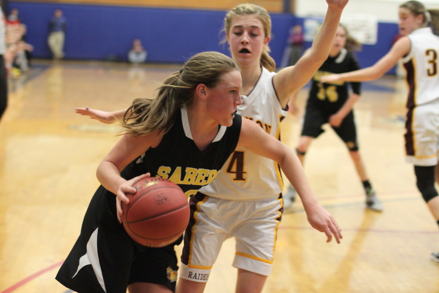 The All-Stater had gotten to the basket five previous times and you knew that down one she would try again……….and she did successfully and it put the Sabers in front, 47-46, with 1 ½ left.