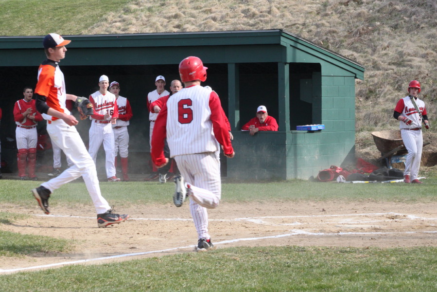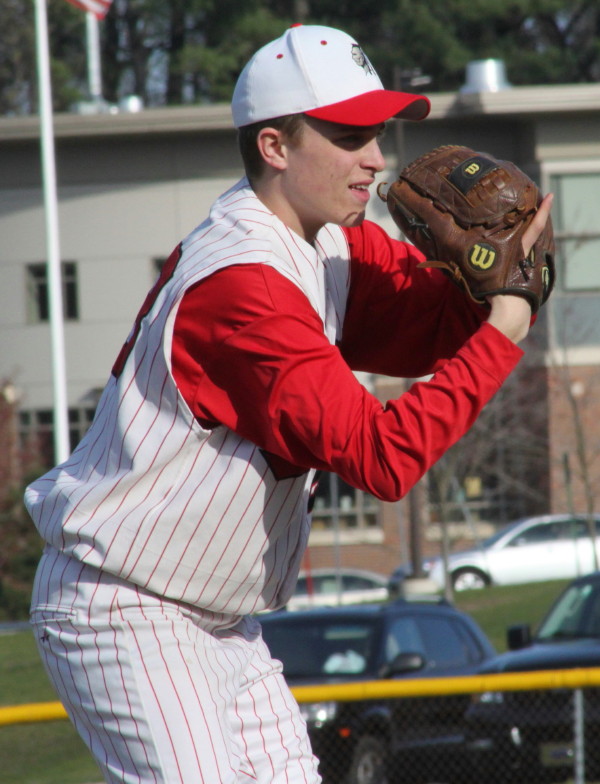John Fierro had pitched well in the Tigers opening win over Mystic Valley. The Indians on this afternoon were all over him early. Two singles (Ben Cullen and Tommy Connors) and a walk loaded the bases for Amesbury with one out. A wild pitch brought in the first run. An RBI single (Shawn Bannon) delivered the second. Shortstop Louis Galanis’ bobble scored the third run and Zack Fitgerald’s double sent home run number four.