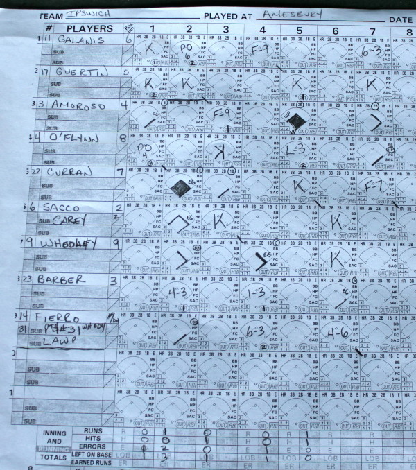 Ipswich stranded nine runners.  Amesbury had five infield errors but the miscues only cost them one run.  The Indian pitching was the difference maker in this one.