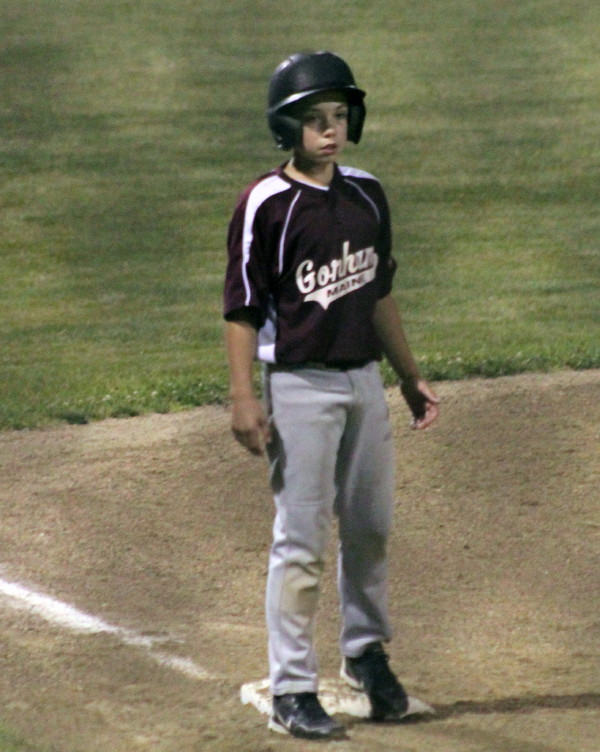 Gorham (tournament champs in 2006) got on the board first in the fourth. They put runners (Mike Evans and Tyler Marston) on first and third with one out. Tyler then broke for second drawing a throw and Mike was able to race home ahead of the throw.