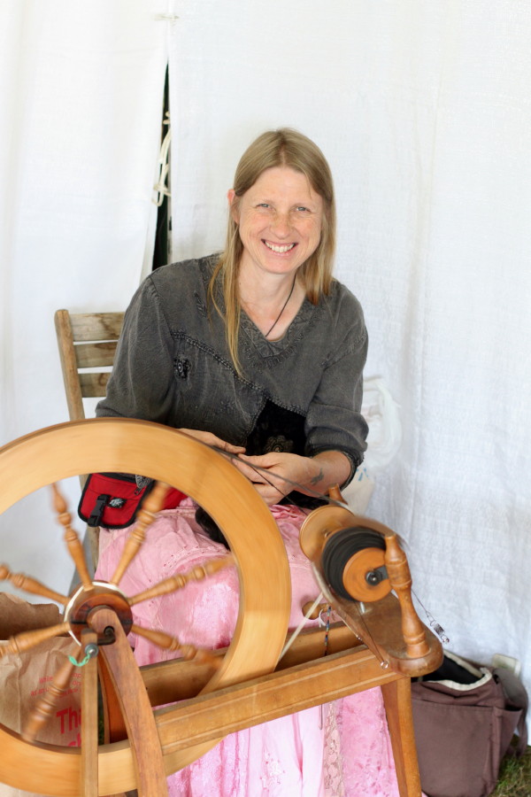 Karen Cornell spins wool.