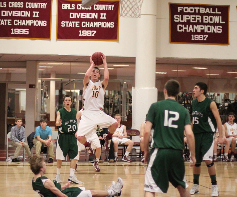 Newburyport, which had won five of their last six, was ahead for most of the first quarter, until a three by Petey Morton (8 points) gave ME their first lead, 16-14, in the last thirty seconds of that quarter. The Hornets stayed in front the rest of the game.