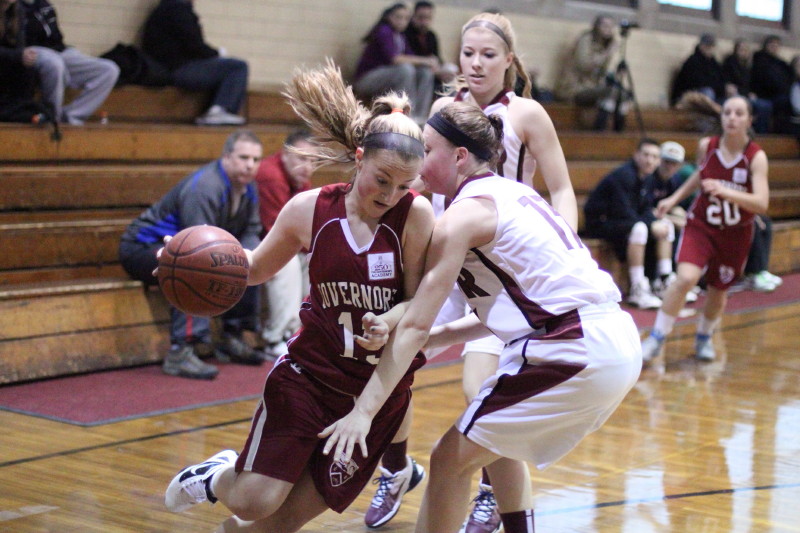After a Gia Doonan (nine points) layup, Jackie Ham (nine points) answered with a layup of her own. Sister Kendall converted a rebound before Aly Griffin answered with a driving layup. This action put the score at 41-40 in favor of the Govs with five minutes left.