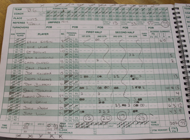 The spark for BG was freshman Jack Zimmerman. The young man hit a three and then a breakaway layup to tie the score at 67-67. Later (at 3:38) when senior point guard Steve Toscano fouled out, Jack took over at point guard the rest of the way.