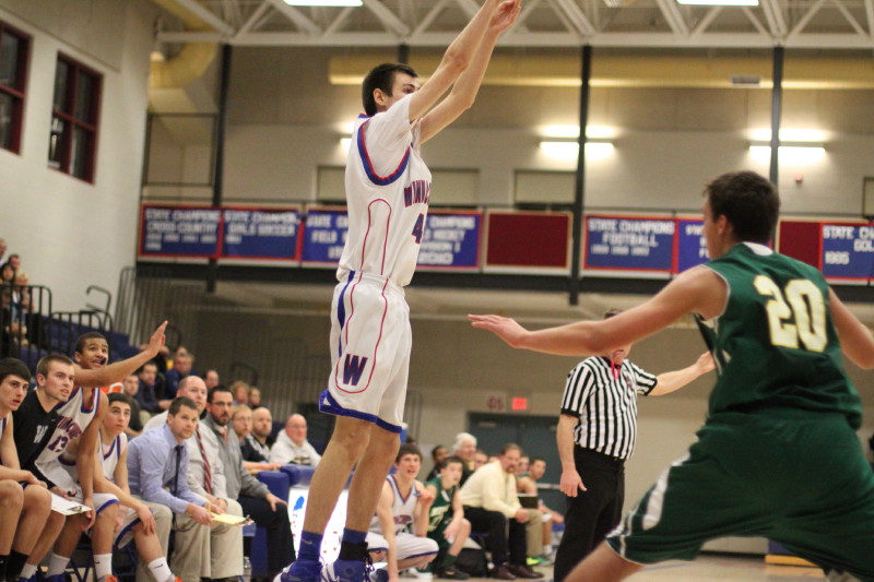 A long one by Ryan Gigliotti (16 points) boosted the WHS edge to ten (28-18) in the second quarter.