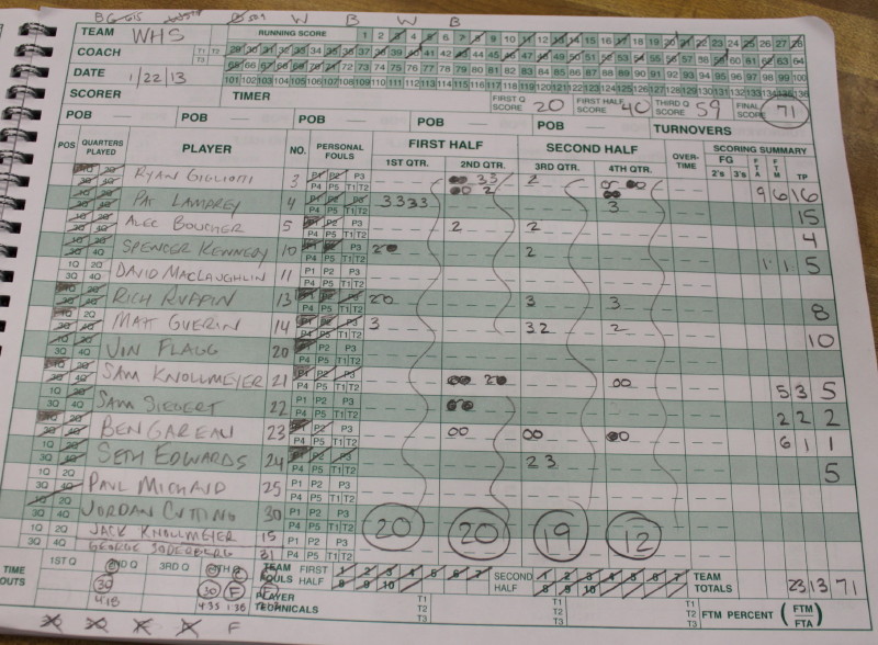 I don’t know how many shots WHS missed during those bleak five minutes but it was plenty. Rich Ruffin had open three’s from either corner and couldn’t get either to drop.