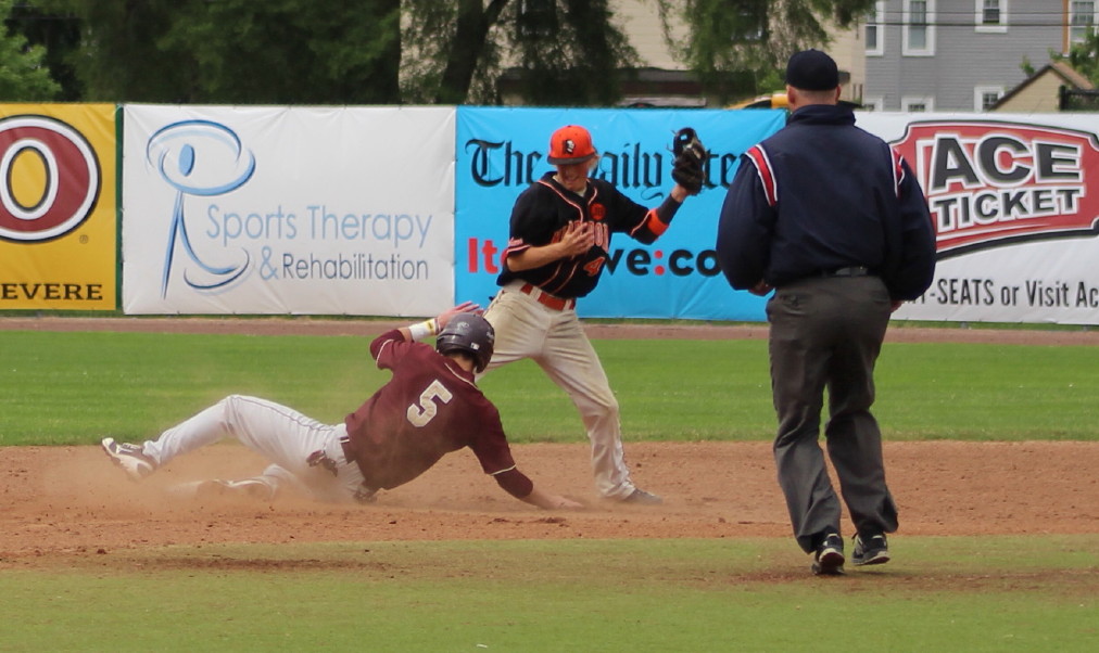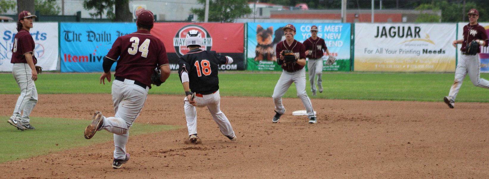 (1) On a single to left by Chris Embree in the second, senior Tyler D’Urso was held at third (from second) even though LF Paul Sances bobbled the ball. Chris tried for second on the play and was thrown out on a good throw. Might have been a run there for Hopedale.