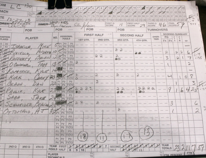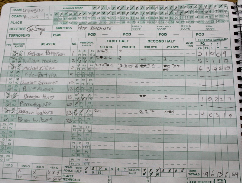My stats for Micheal Gilliam, Will Hardie, Eric Houska, and Matt Shifrin disagree with the University scorebook but I’ll take my chances on mine being right.