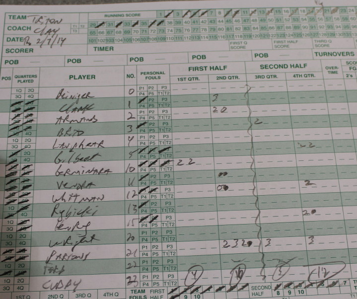 Meanwhile, during this same stretch, Coach Dave Clay of Triton burned his fourth timeout and pulled his starters.  However, on this night, there was nothing that the Triton coaching staff could do to turn this one around.