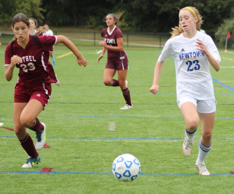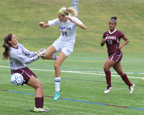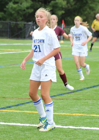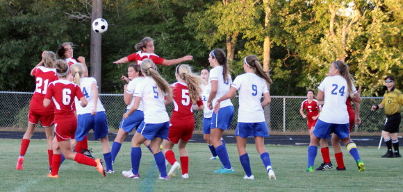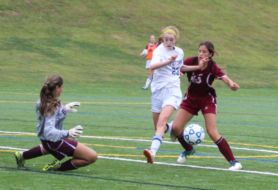 Freshman Emma Woods headed in the game-winner off of a throw-in by senior Maria Valente in the closing seconds.