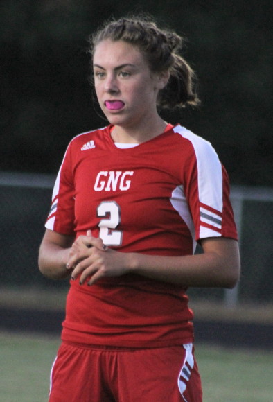With no overtime period played during the regular season, both teams pressed for the win in the final minutes. In the closing minute, GNG’s Kaelyn Woods kept the ball in play down the right sidelines before the Raiders kicked the ball out-of-bounds with under fifteen seconds remaining. Maria Valente had to really hustle to get from her defensive spot to the throw-in attempt. She did and had the ball in the air with few seconds left. The ball came into the near-side of the box area with plenty of steam on it. Emma Woods leaped high and redirected Maria’s throw-in to the far corner of the goal.