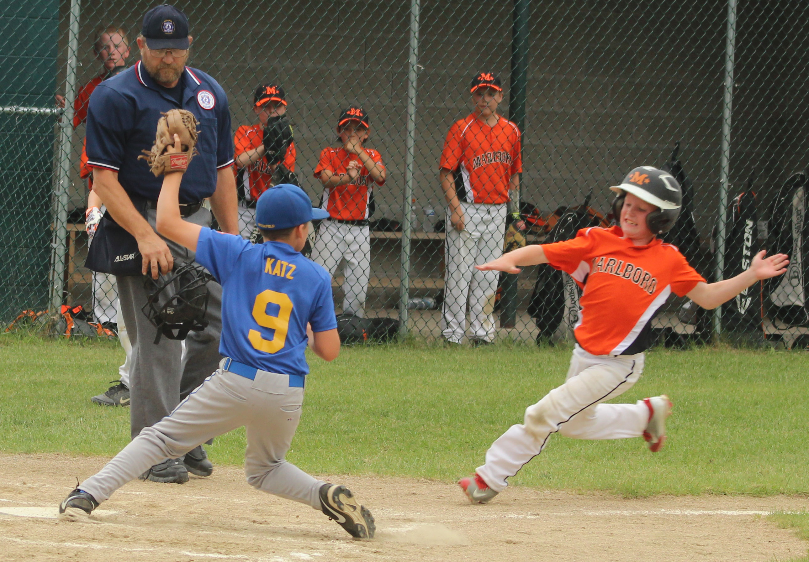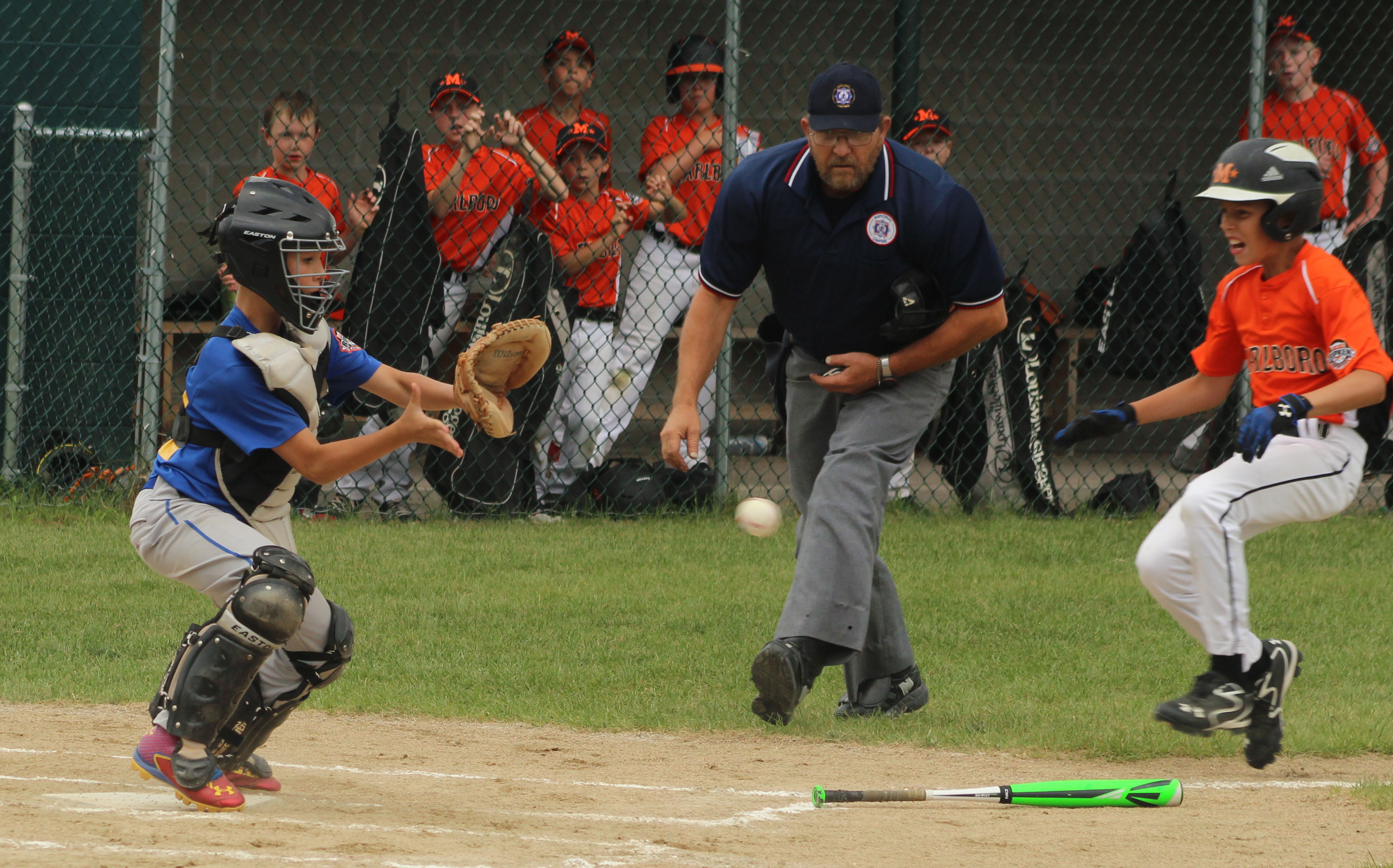 Marlboro ran into the final out of highly-productive inning at the plate. Brookfield catcher Kyle Rosa quickly retrieved a passed ball and tossed to pitcher Casey Katz who was able to tag Drew DeFranzo for the last out.