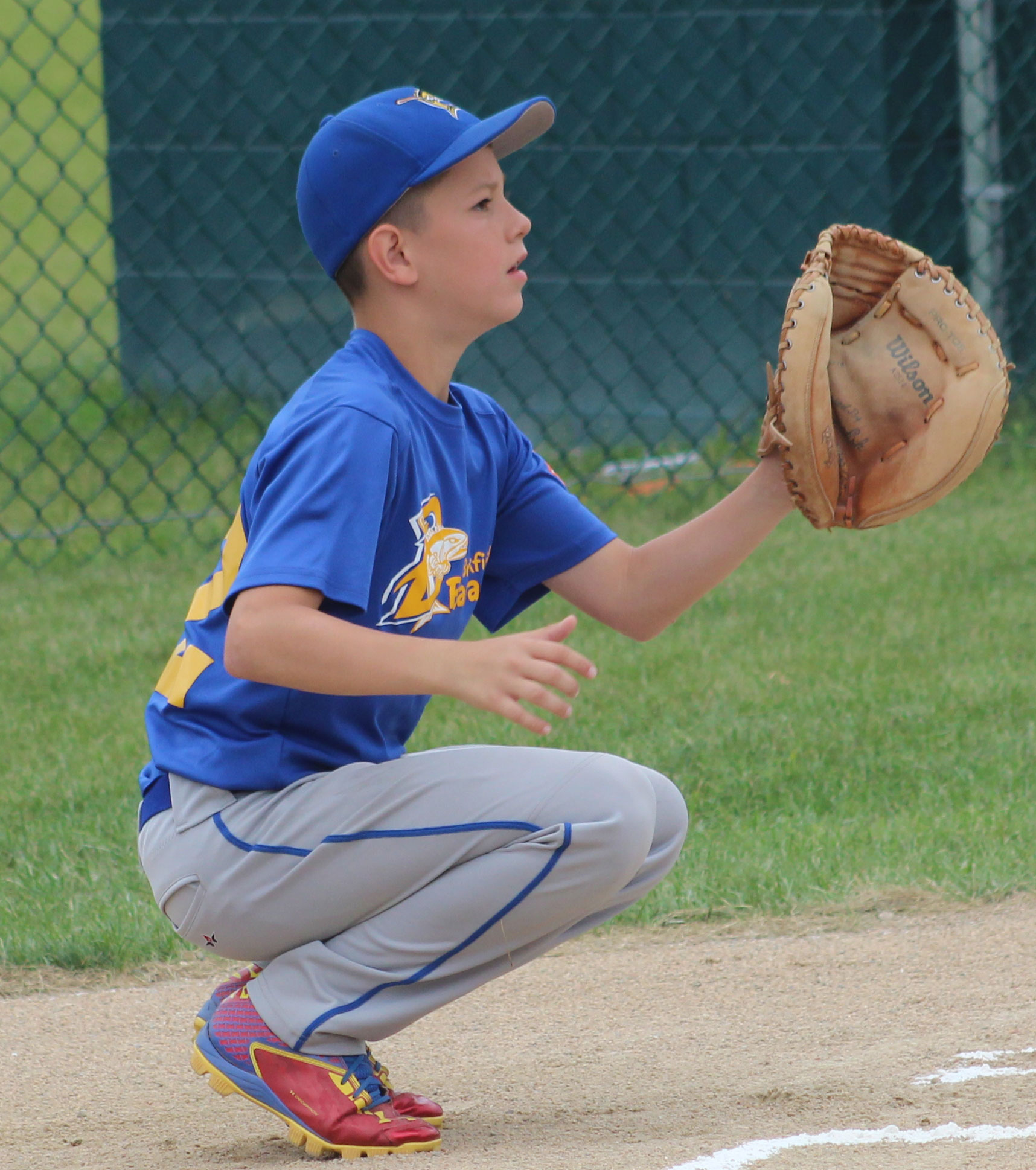2B Jake Miceli gets an out from his knees