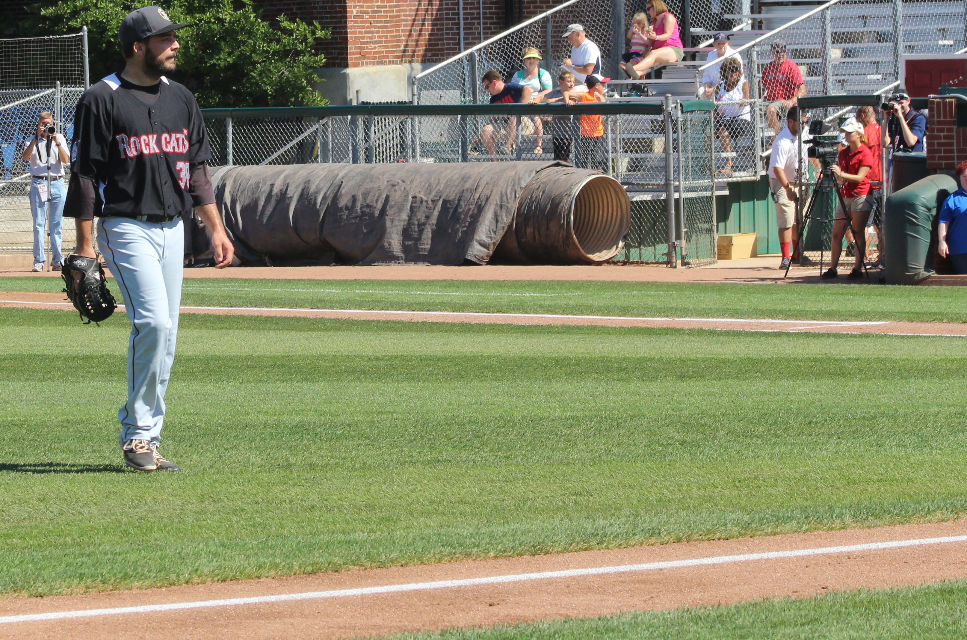 Today I was blessed to have a photographer near me in the New Britain dugout who has been covering the Rock Cats for twelve years. He told me earlier that he had been at Hadlock when the team bus arrived and didn’t see David Dahl get off. However, later when a player strolled into the Rock Cats dugout just before game time I asked him if it was David Dahl and he confirmed that it was.