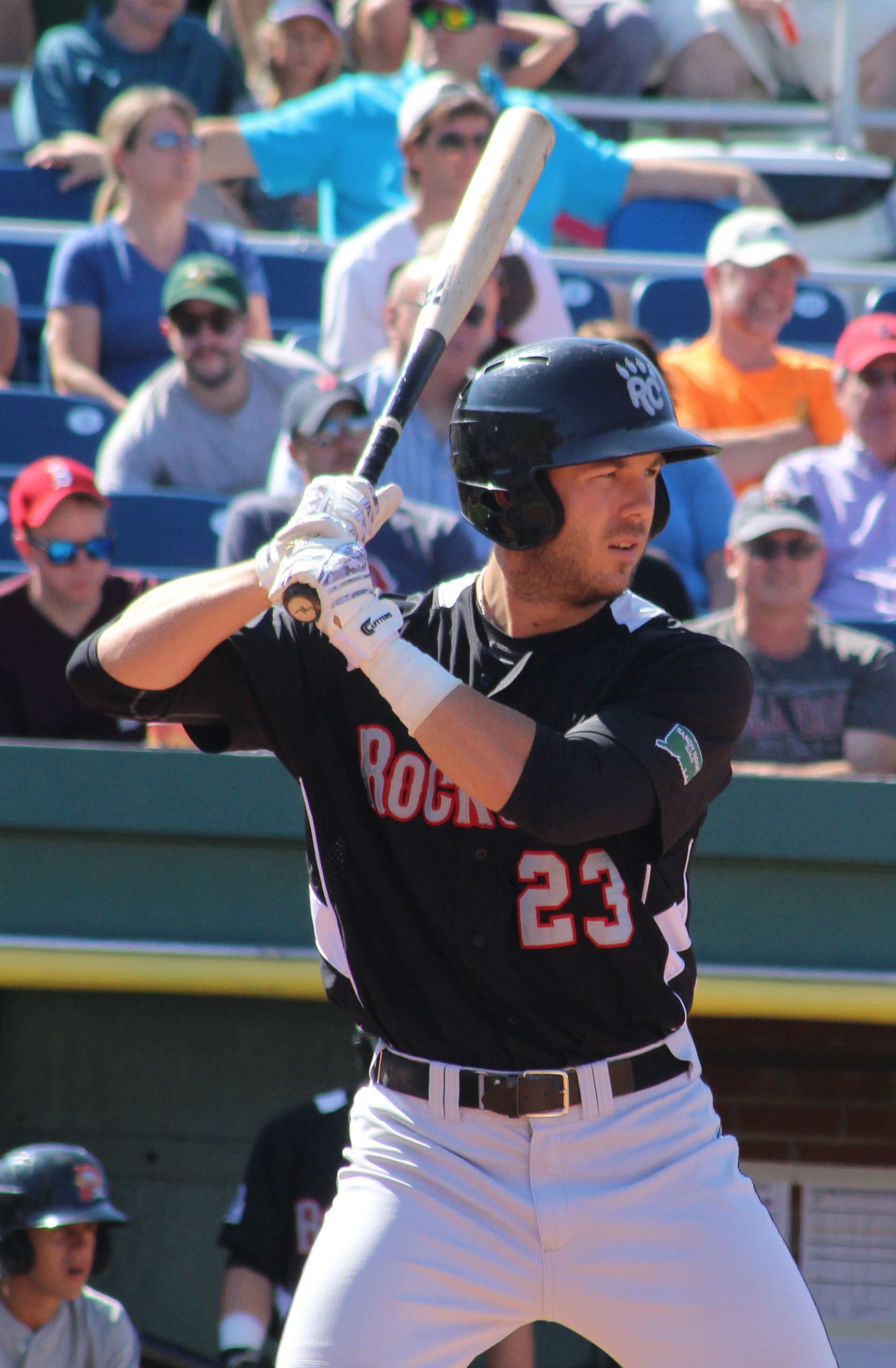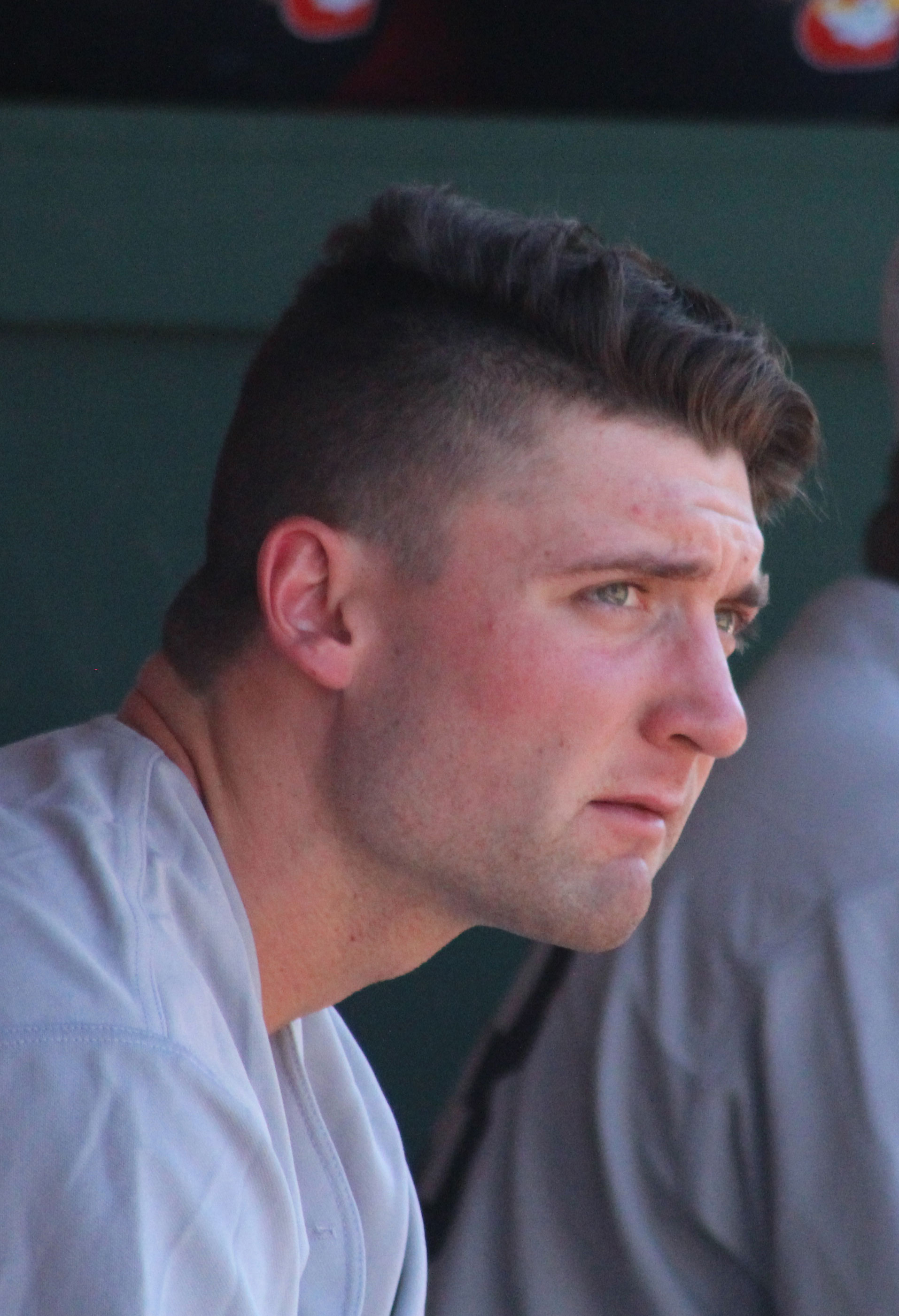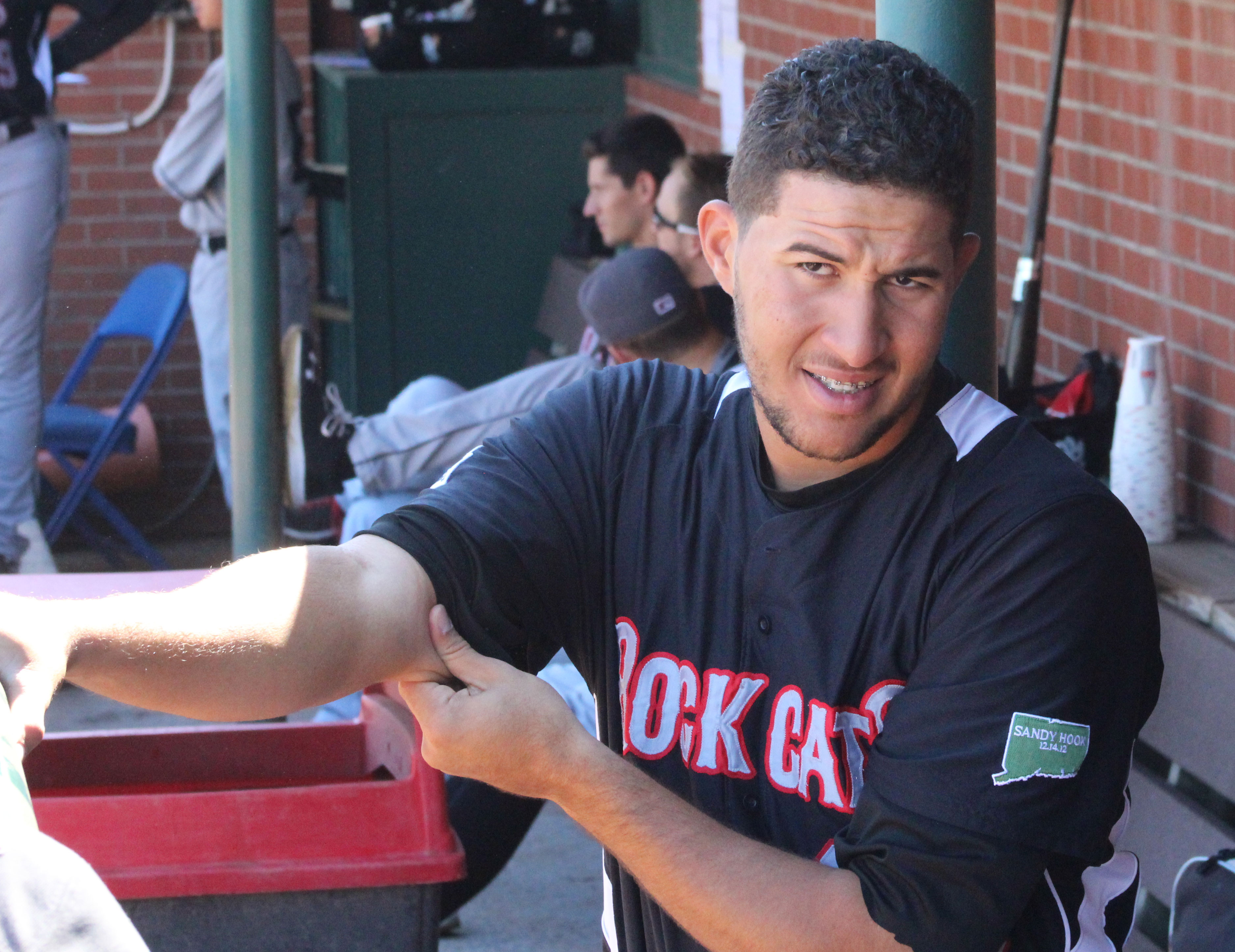 David Dahl in the Rock Cats dugout