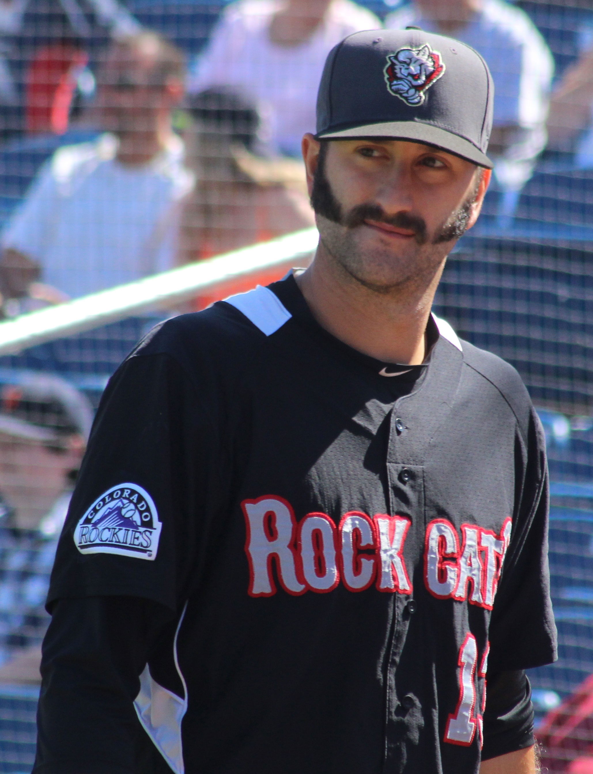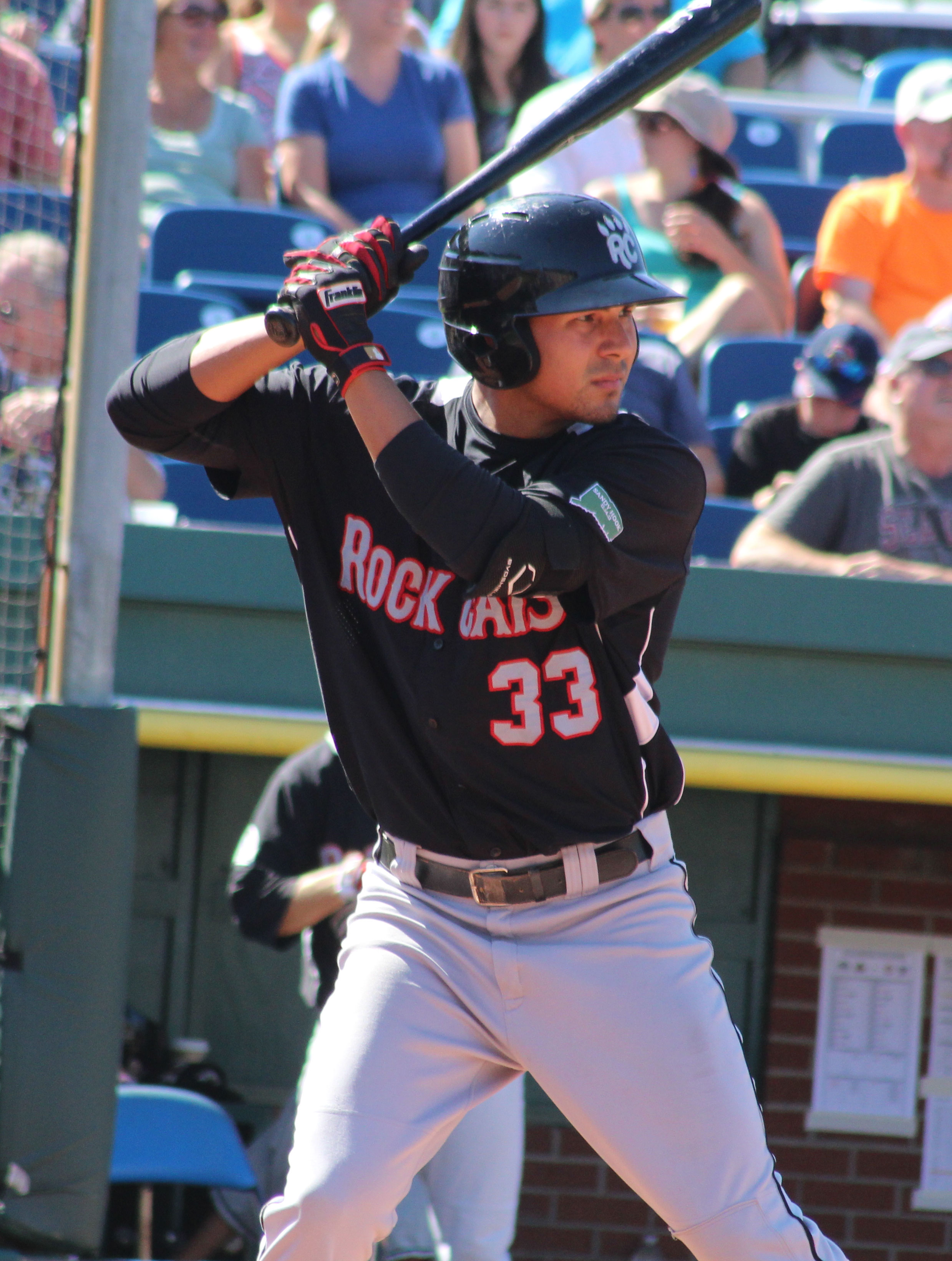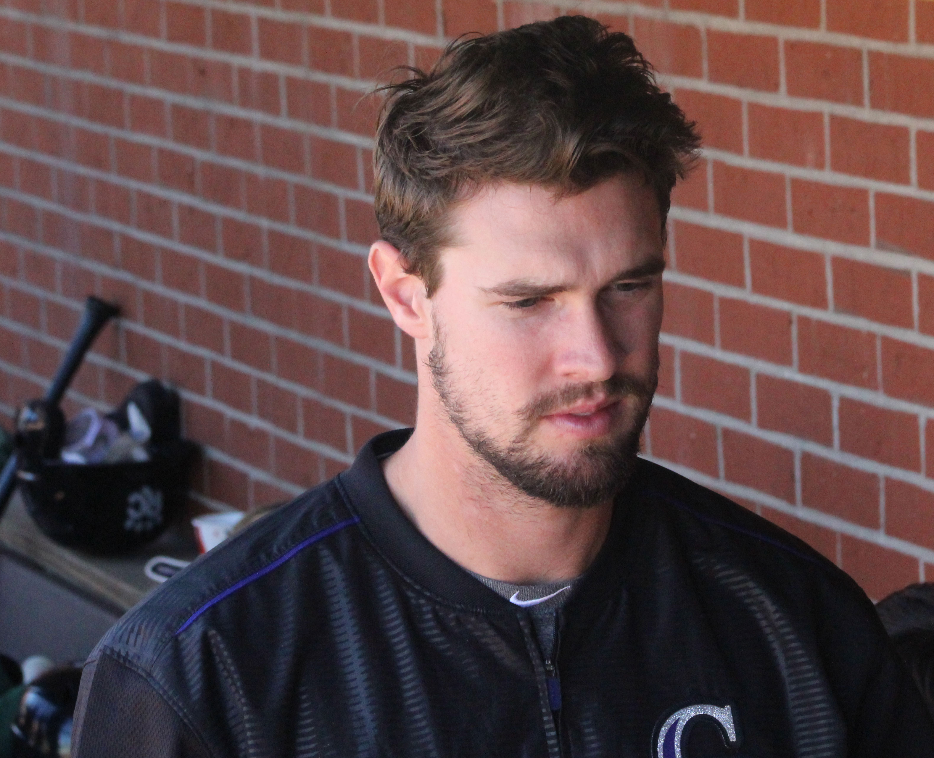 David Dahl in the Rock Cats dugout