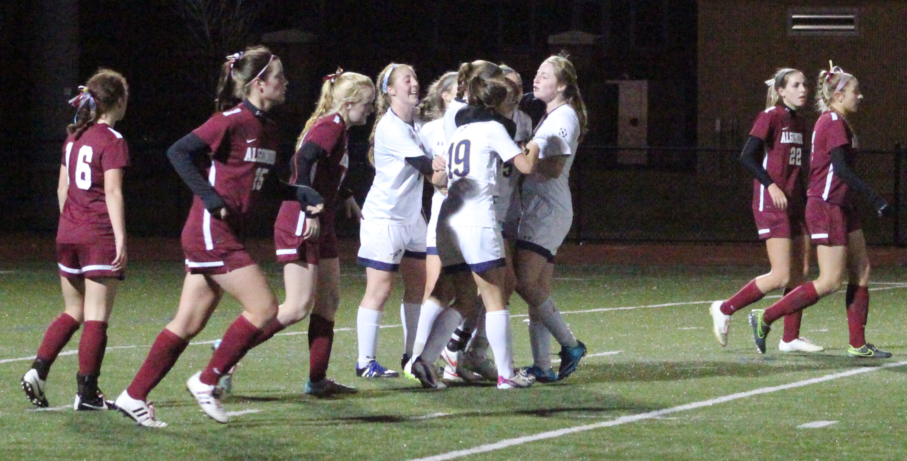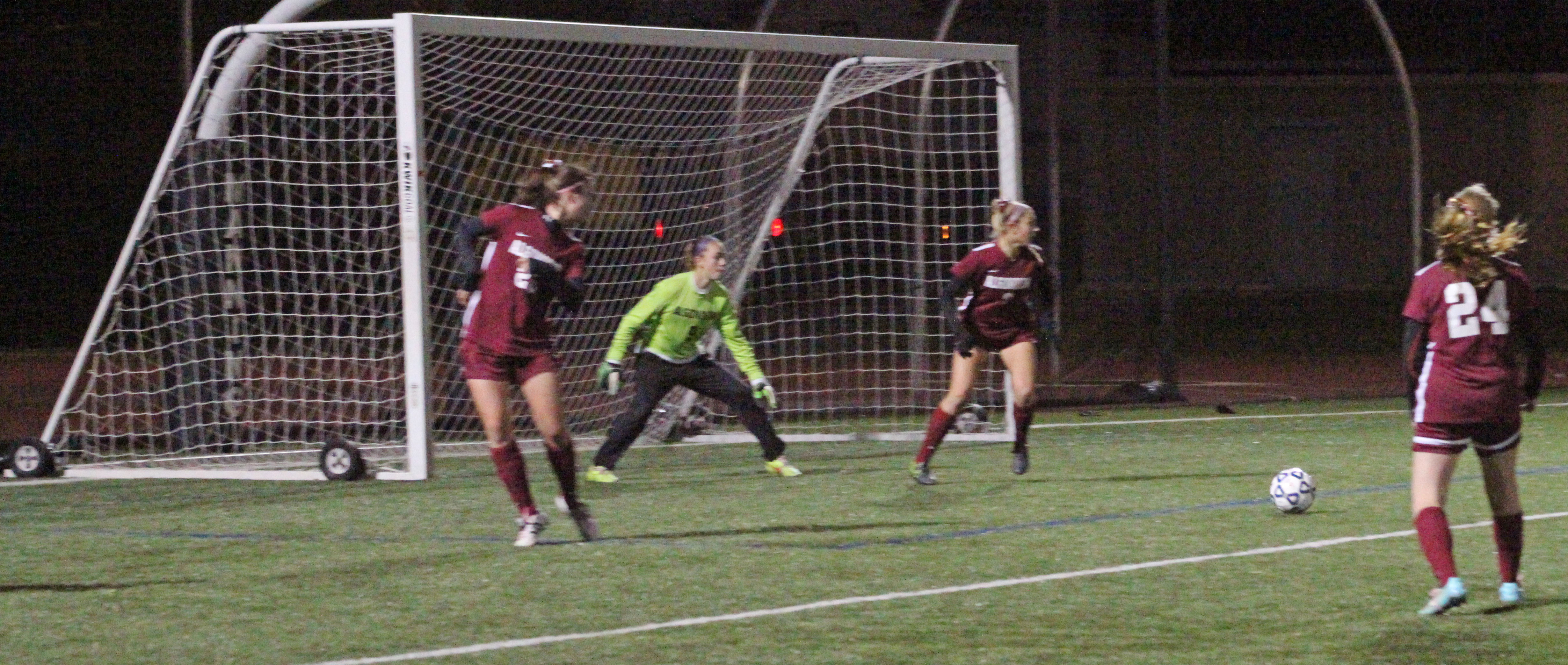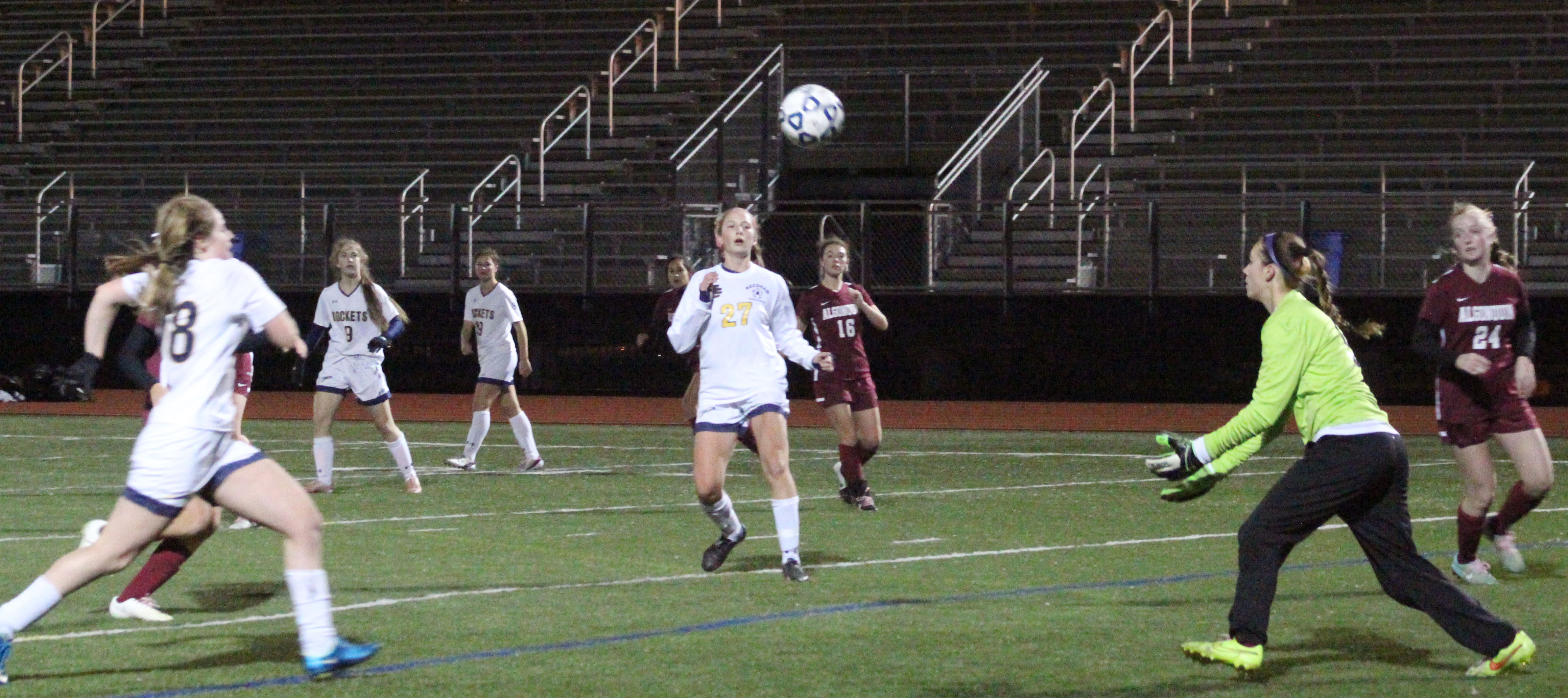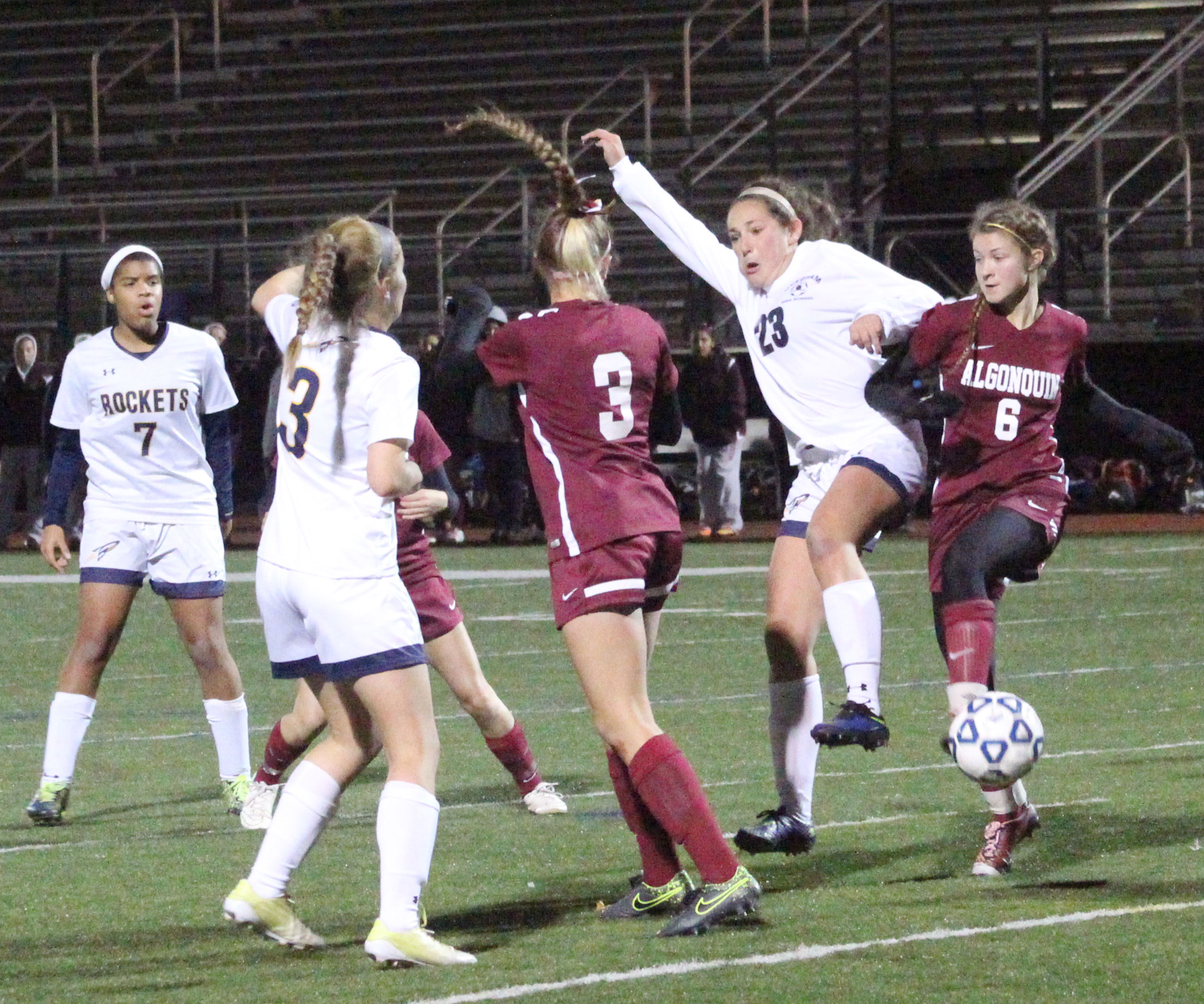 Algonquin’s senior Caroline Leonard rammed home a rebound with fifteen minutes to go to narrow the Rockets’ lead to 3-1.