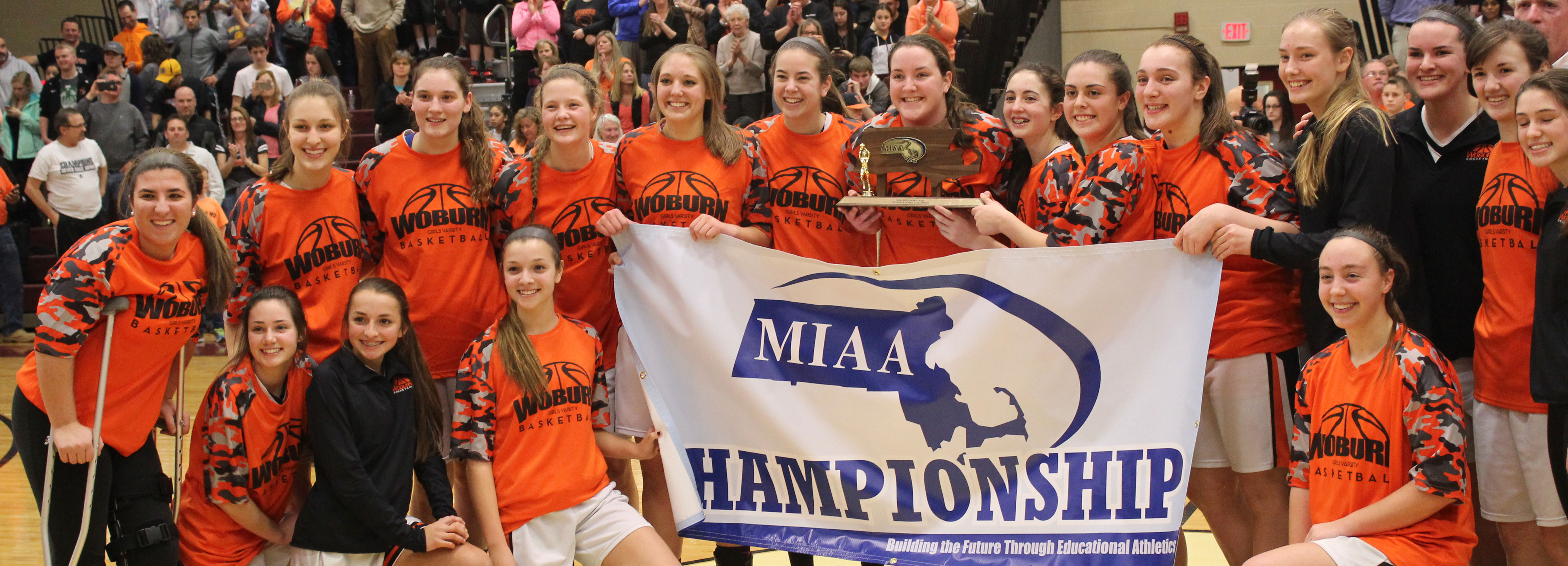 Good crowd on hand. The Woburn student section had some bright colors on.