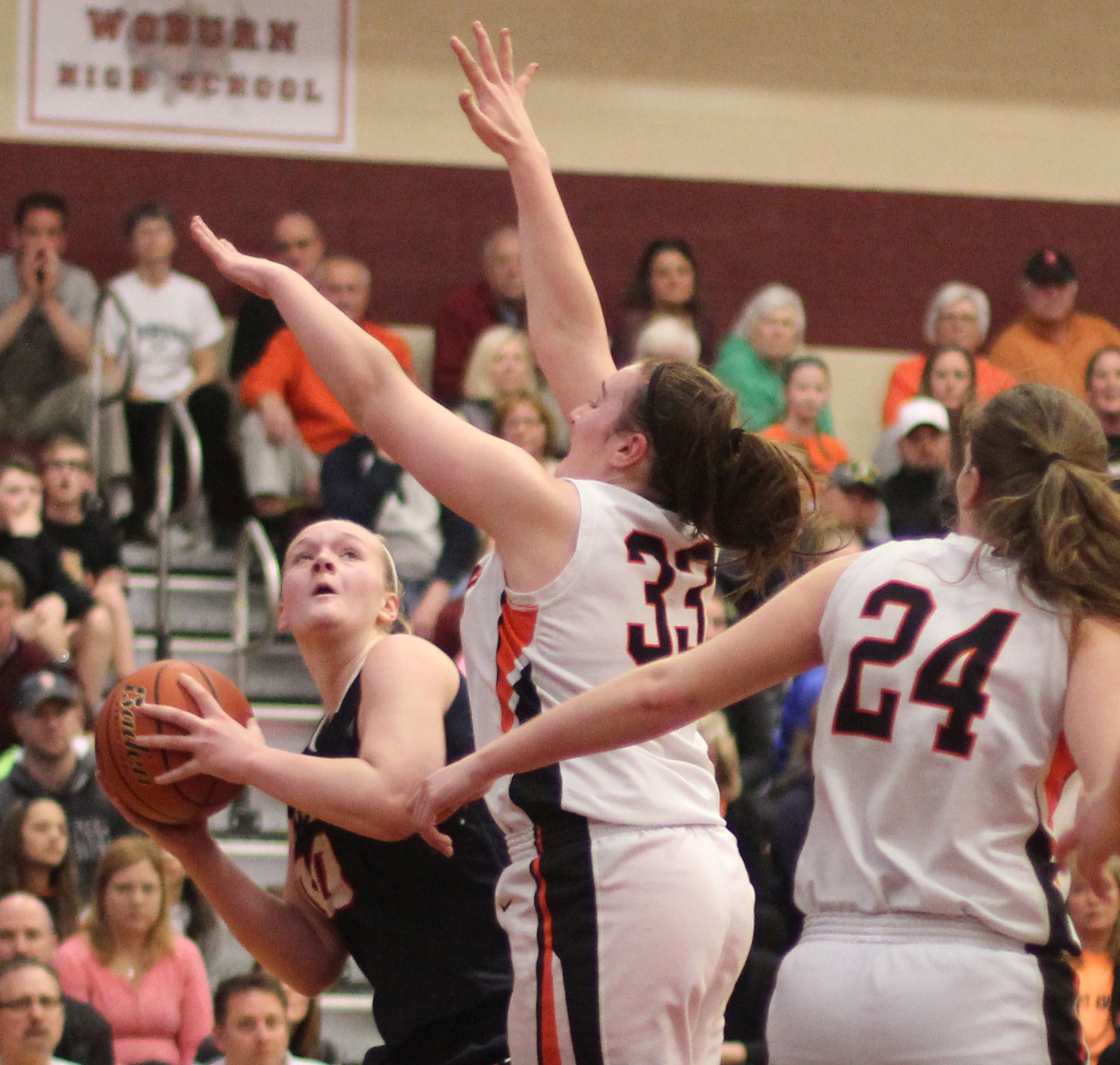 Sophomore Valentina Pepic (10 points) did find some layup room late in the game but by then Woburn was trying not to foul.