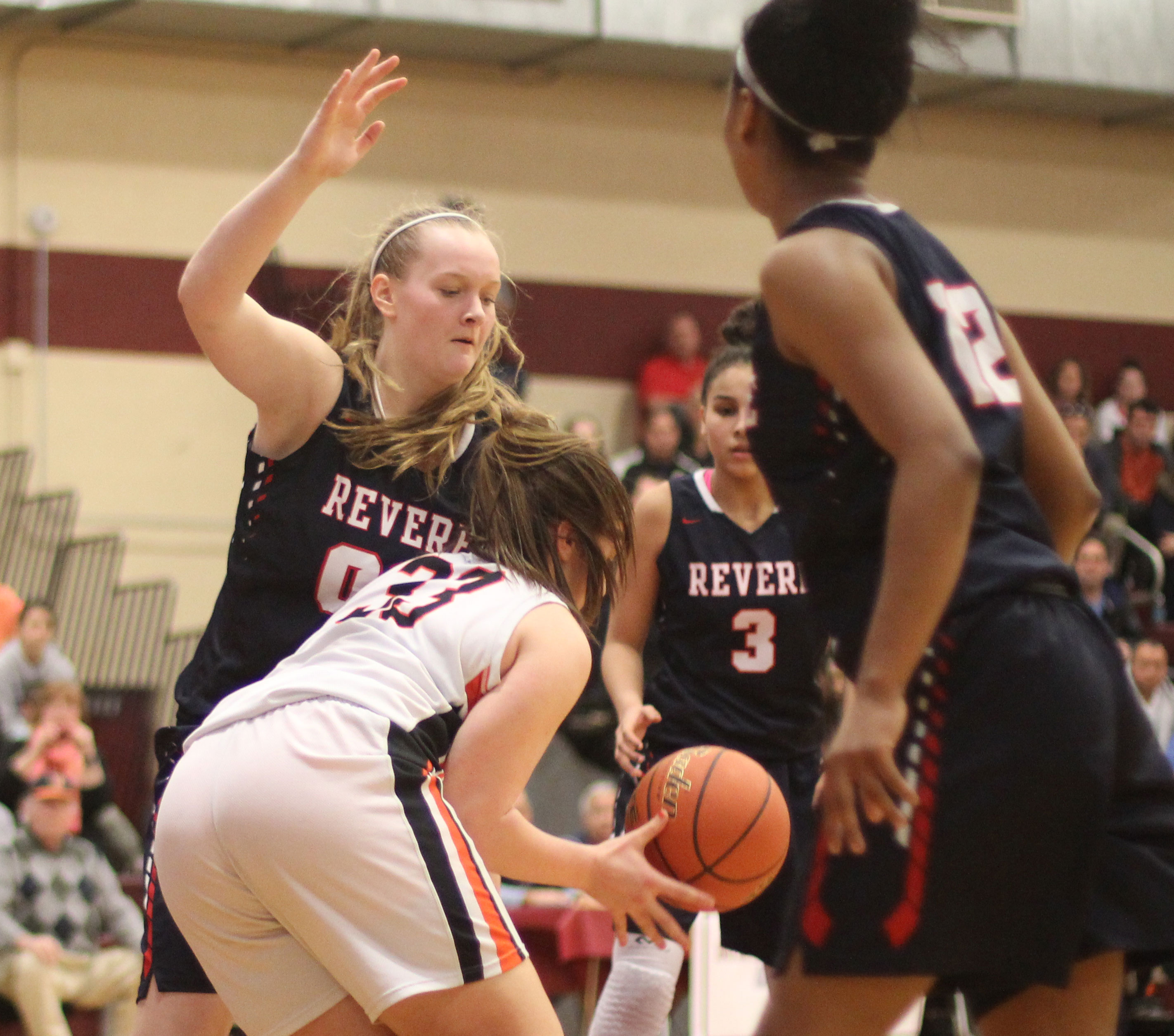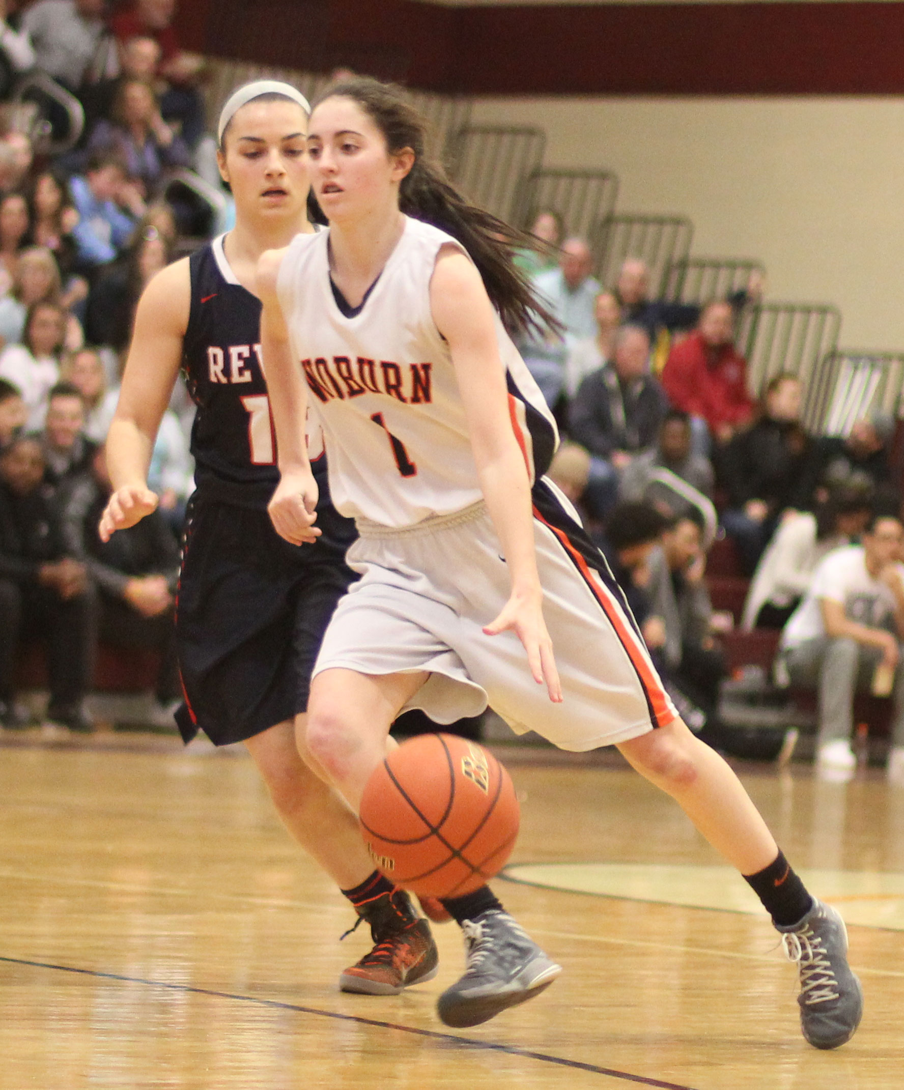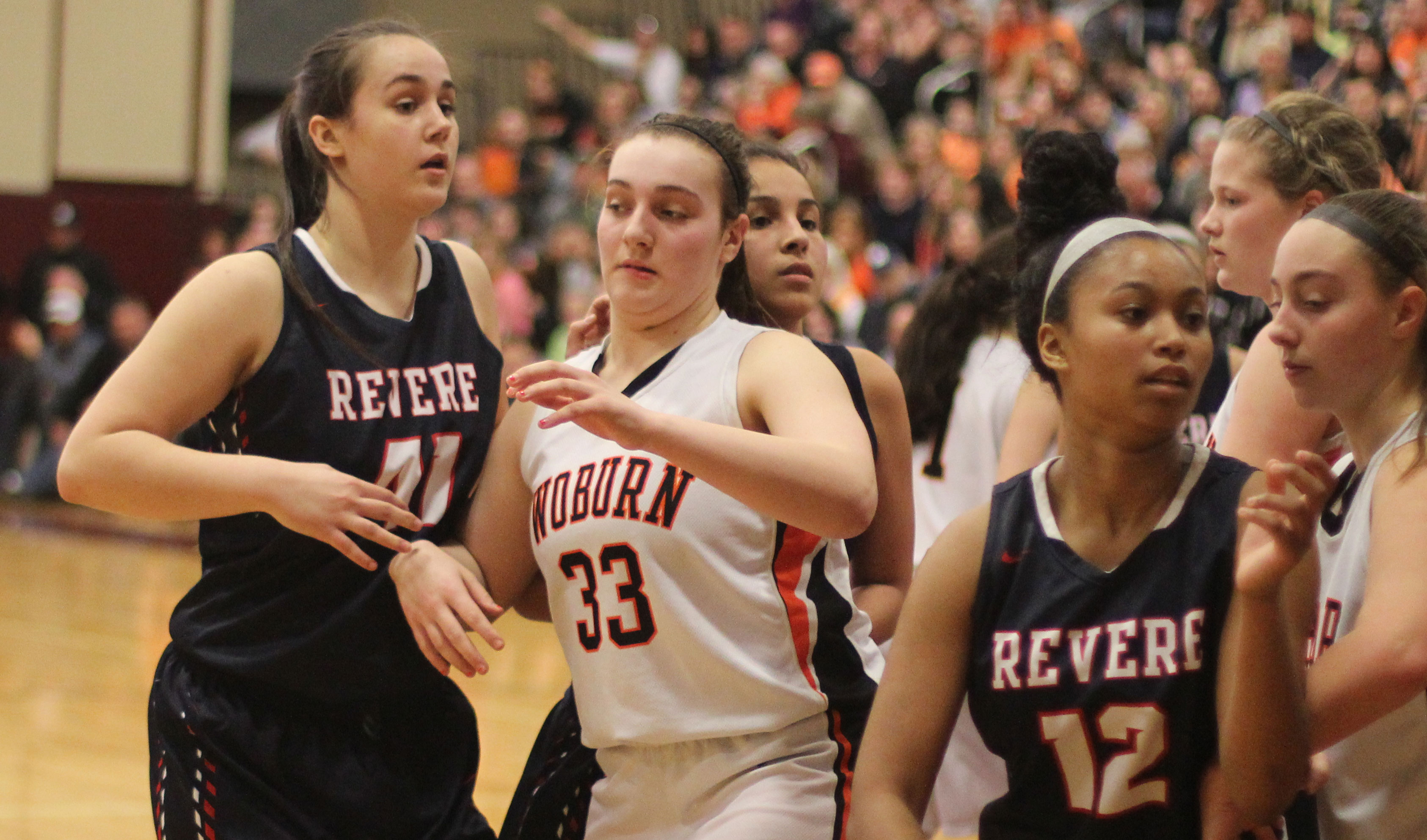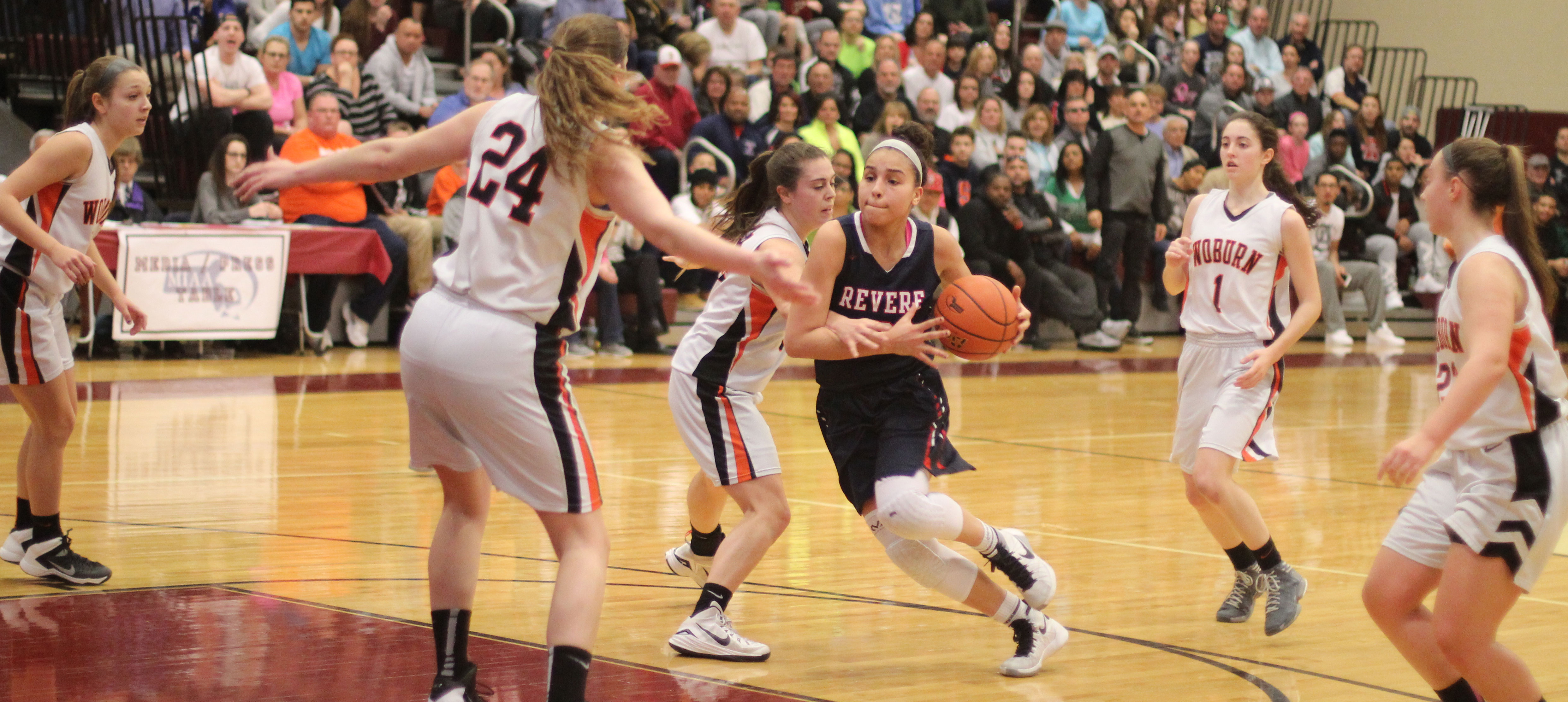 Revere (20-6), from the Northeastern Conference, was tied with Woburn twice in the early going. Maritza Scott and Pamela Gonzalez had consecutive layins to knot the score at 6-6 with 2 ½ minutes left in the first quarter.