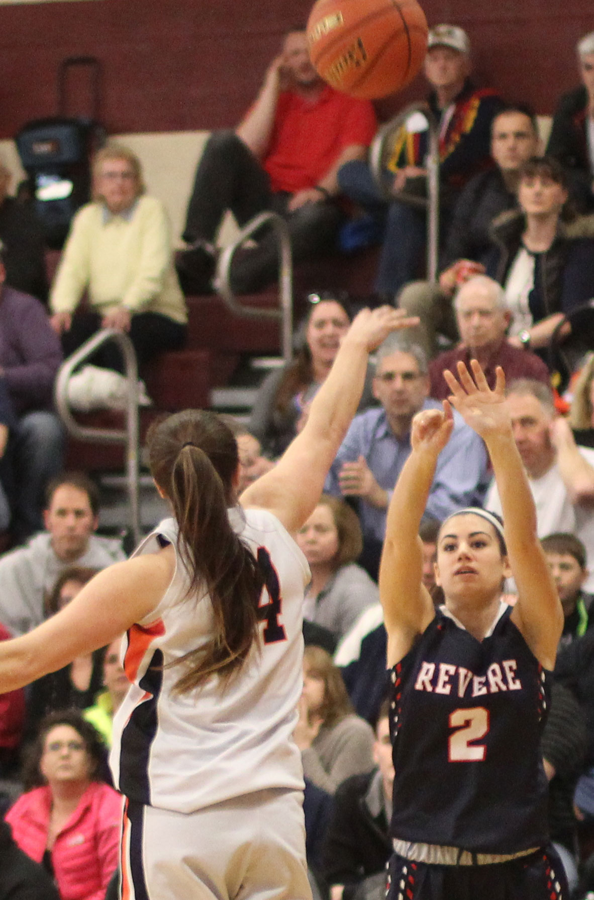 The next six minutes of playing time did in Revere. They tallied just one point (Ally Hinojosa free throw) while the Tanners garnered eight points from two layups (Nicole Pacheco, Kelsey Qualey), a jump shot (Marissa Gattuso), and free throws by Marina Rufo and Mya Blazejowski.