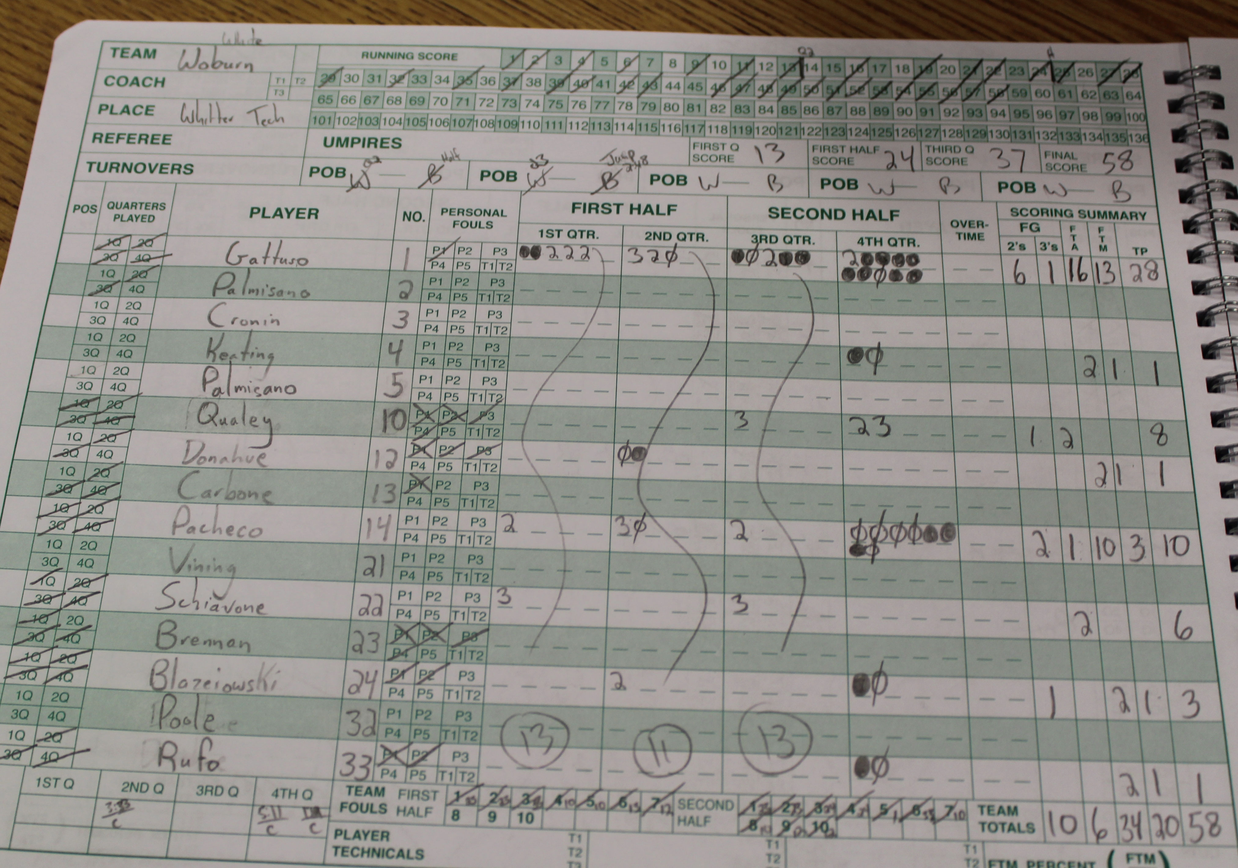 Woburn had six three’s in the game and got two of them (Andrea Schiavone, Nicole Pacheco) in the breakaway segment. There were two Marissa Gattuso floaters in the same mix.