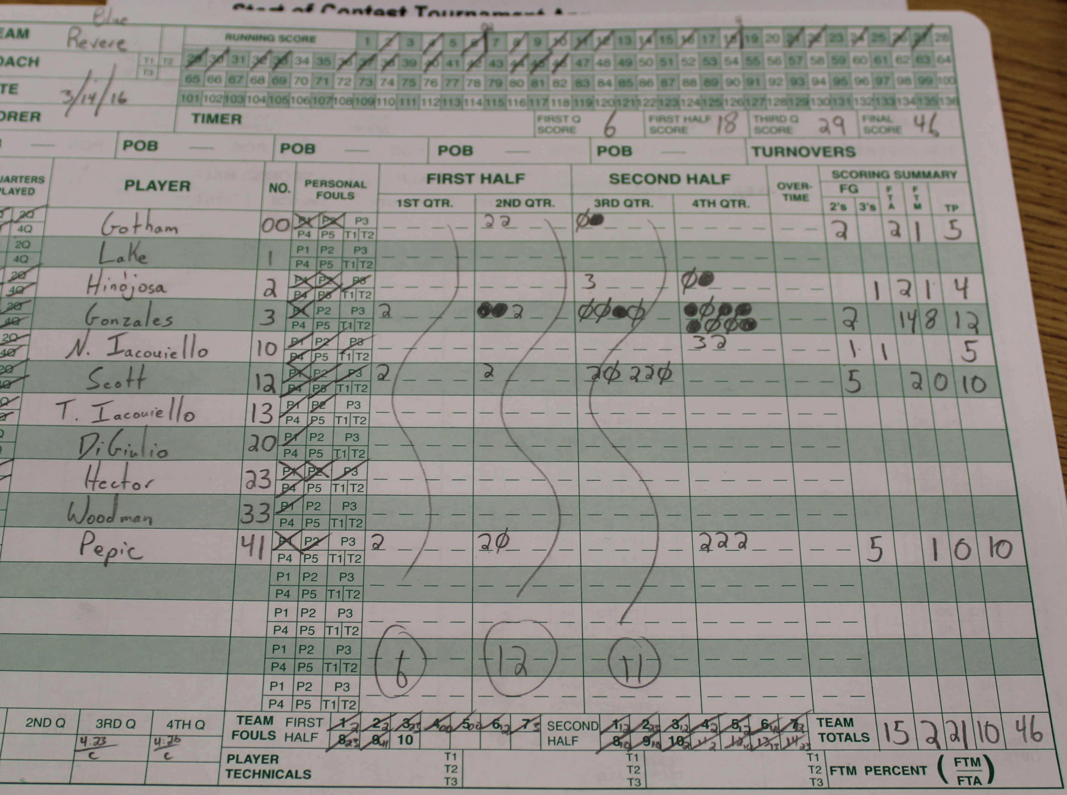 The foul shooting could have been better for both teams: Woburn (20-for-34), Revere (10-for-21). Too many high school players are spending too much time practicing 3-pointers. Revere was 2-for-8 from the foul line in a quarter (3rd) when they got within three points of the lead!
