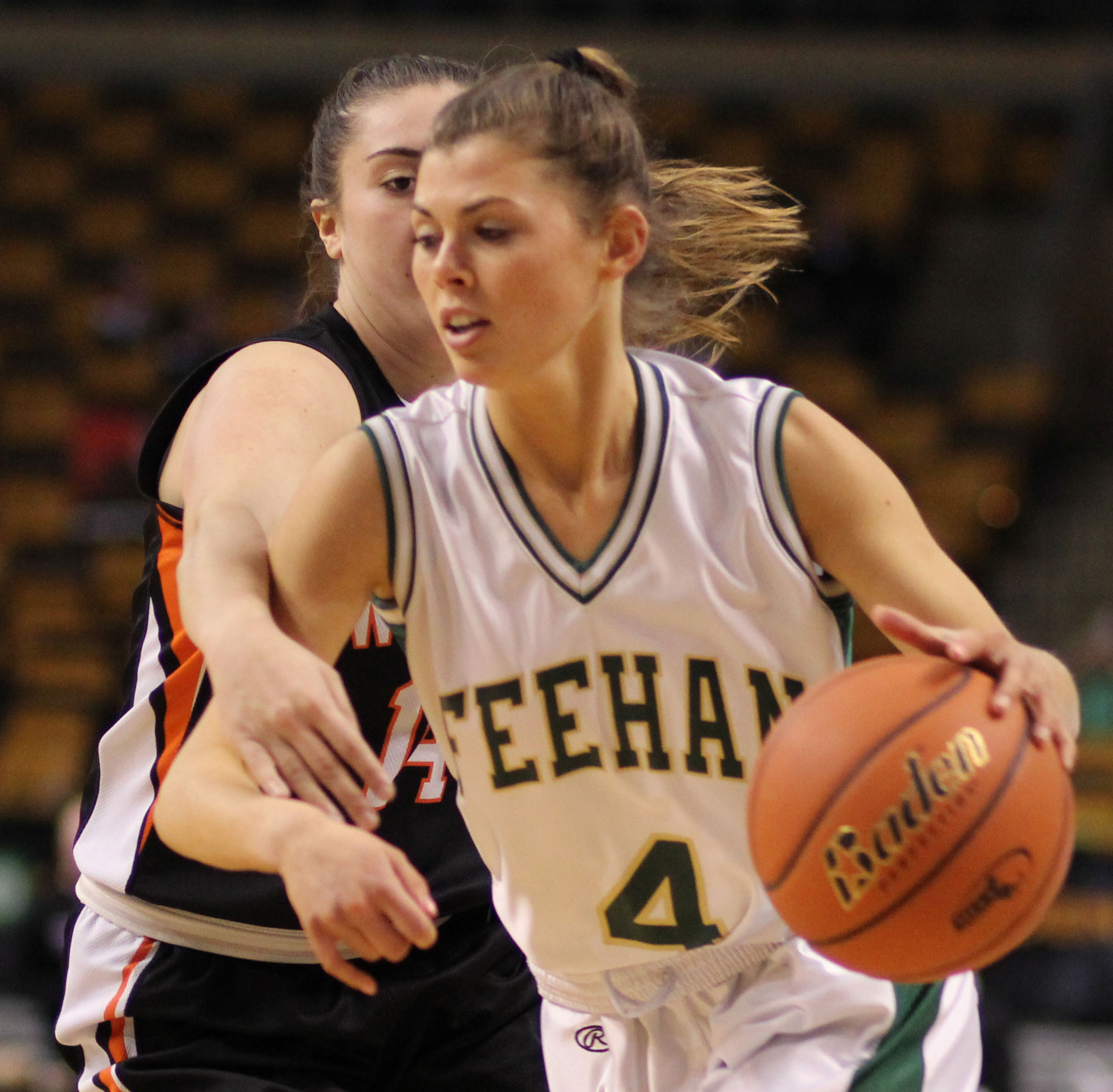 Where did Bishop Feehan’s thirteen points comes from? Katie Nelson hit a long-distance three and then added an old-fashioned three. Then came Lauren Manis to add an old-fashioned three, a jump shot, and two free throws.